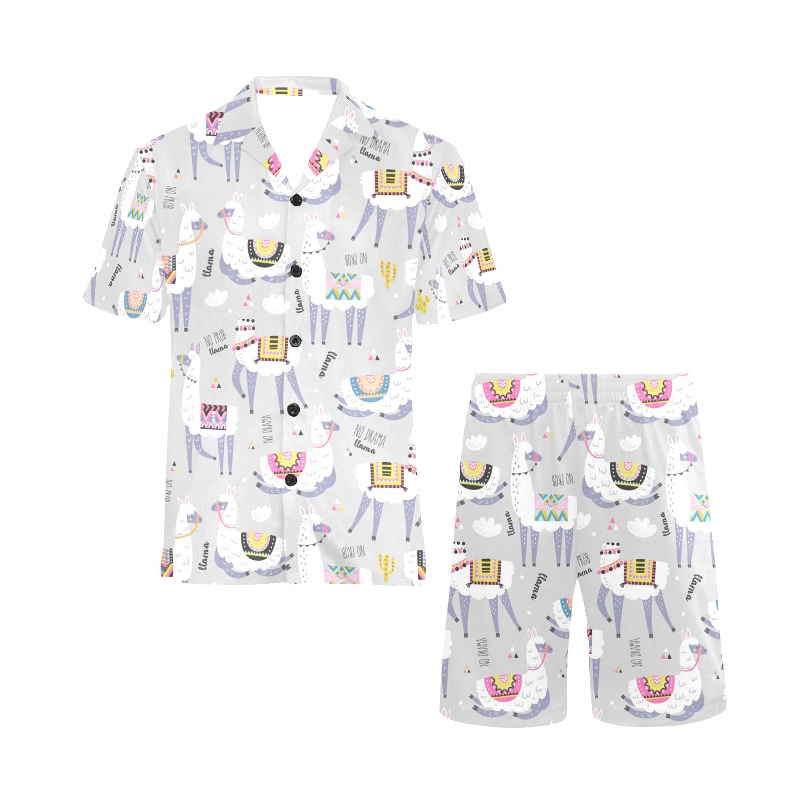 Cute Llama Alpaca pattern Men's V-Neck Short Pajama Set