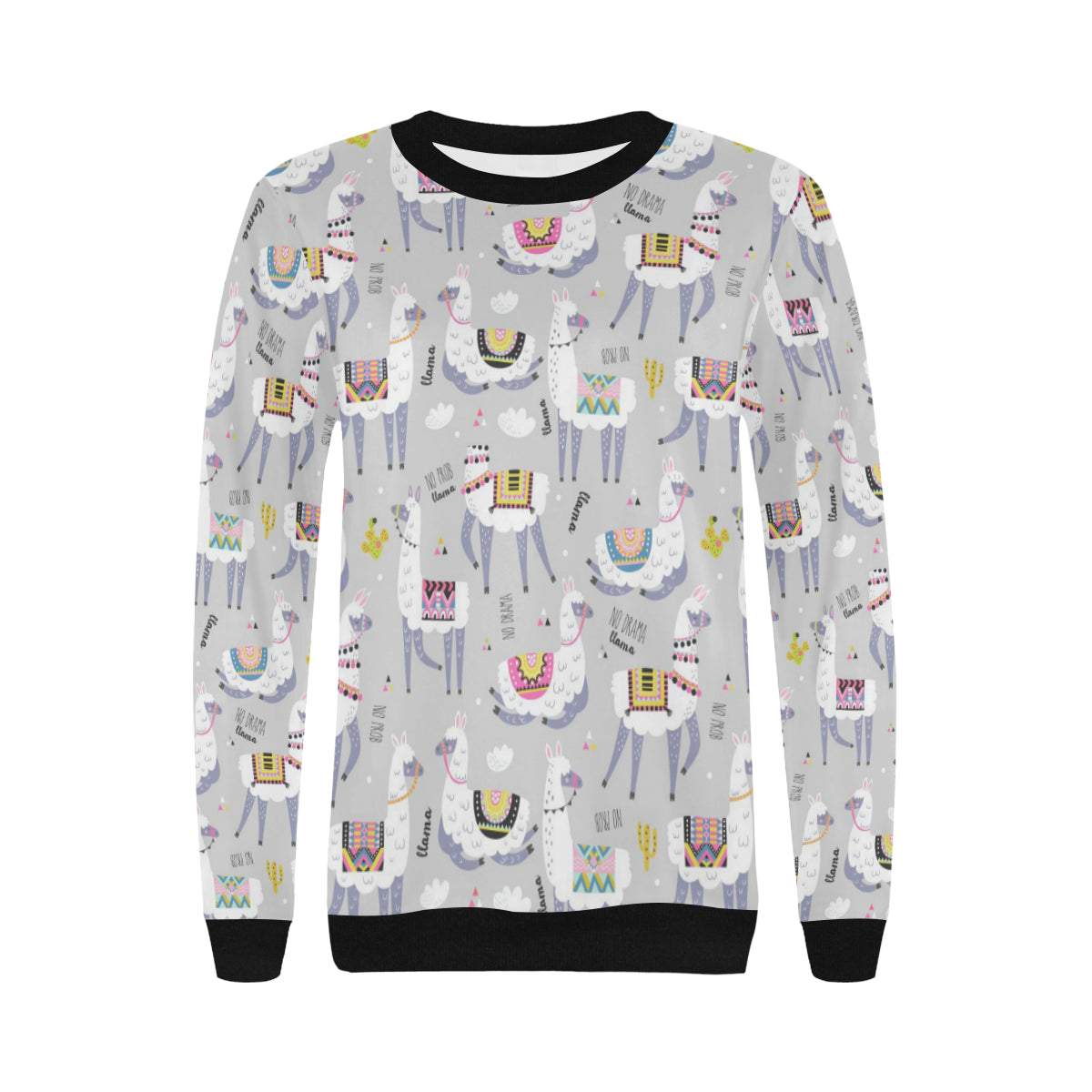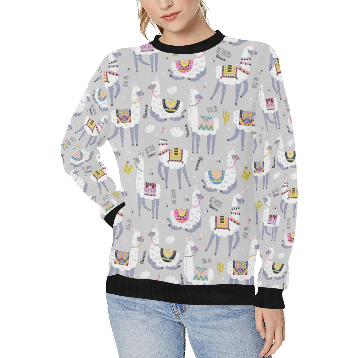 Cute Llama Alpaca pattern Women's Crew Neck Sweatshirt is a uniqued design and limited item. It made to order, hand printed, and sewn with love in our factory.