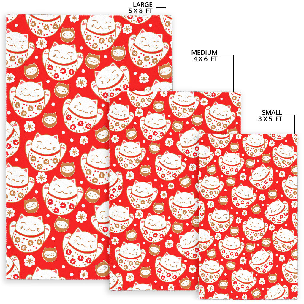Cute Maneki neko cat red background Area Rug is a uniqued design and limited item. It made to order, hand printed, and sewn with love in our factory.