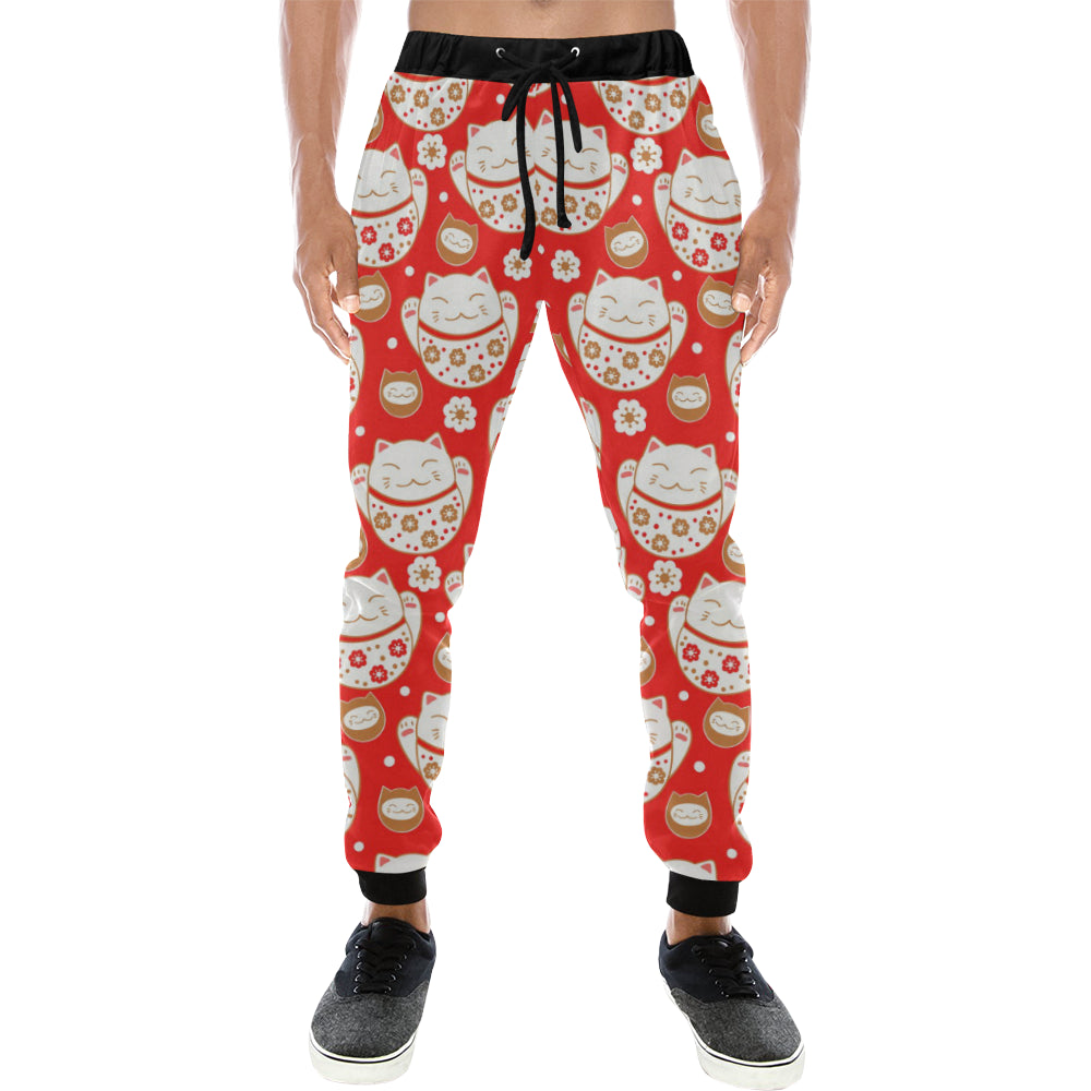 Cute Maneki neko cat red background Unisex Casual Sweatpants