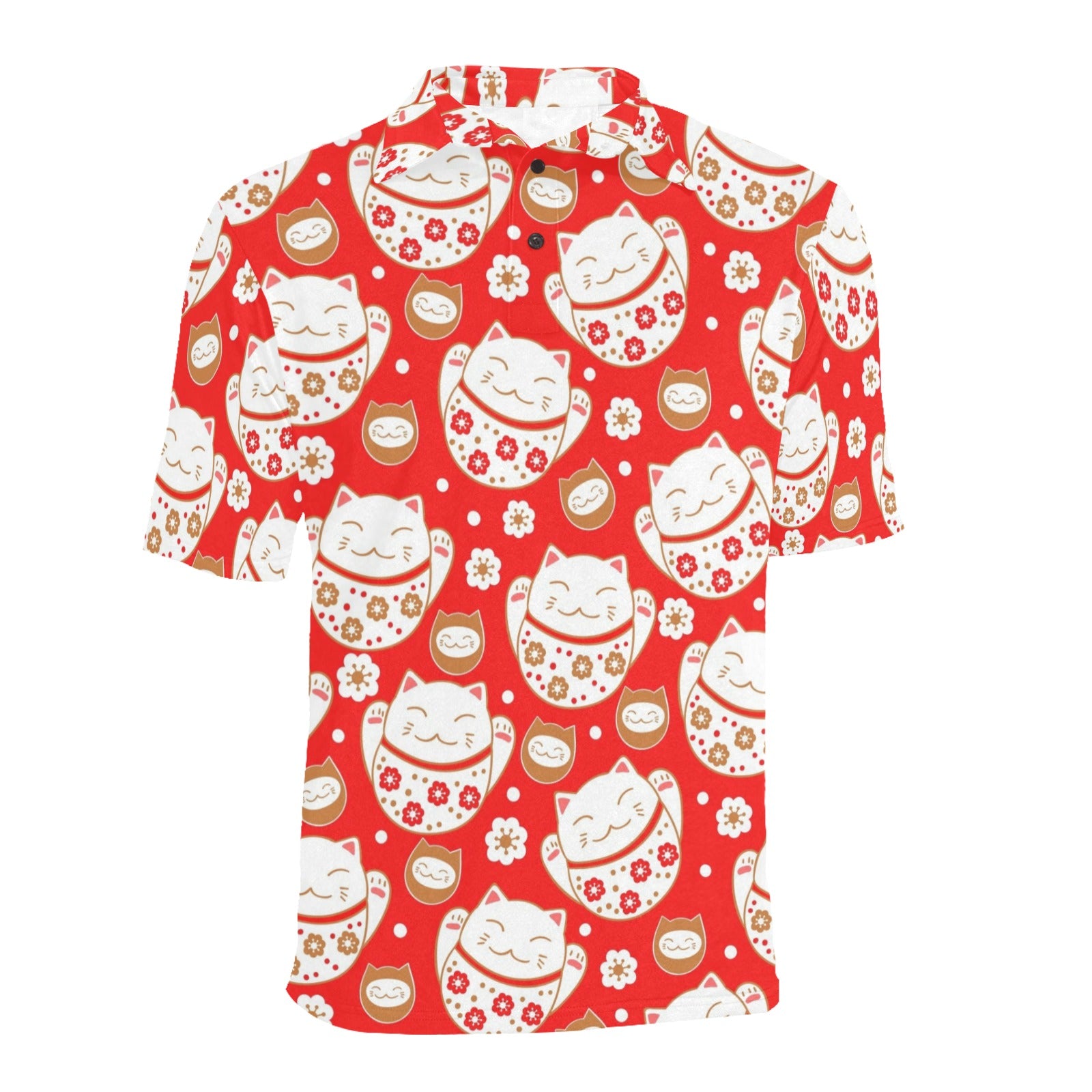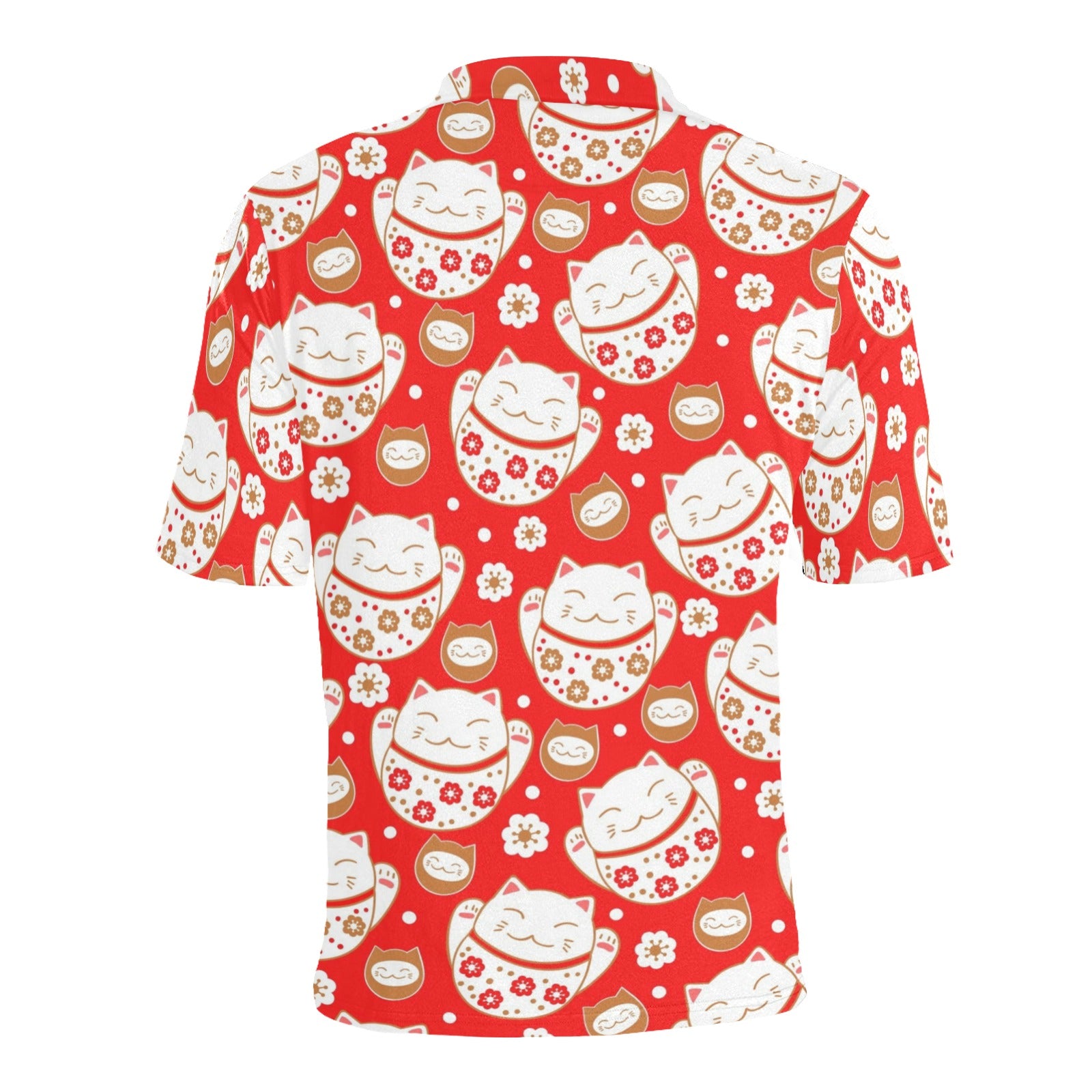 Cute Maneki neko cat red background Men's All Over Print Polo Shirt