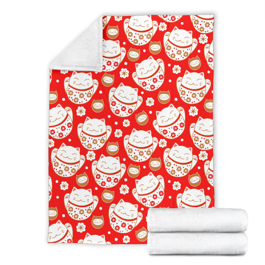 Cute Maneki neko cat red background Premium Blanket is a uniqued design and limited item. It made to order, hand printed, and sewn with love in our factory.