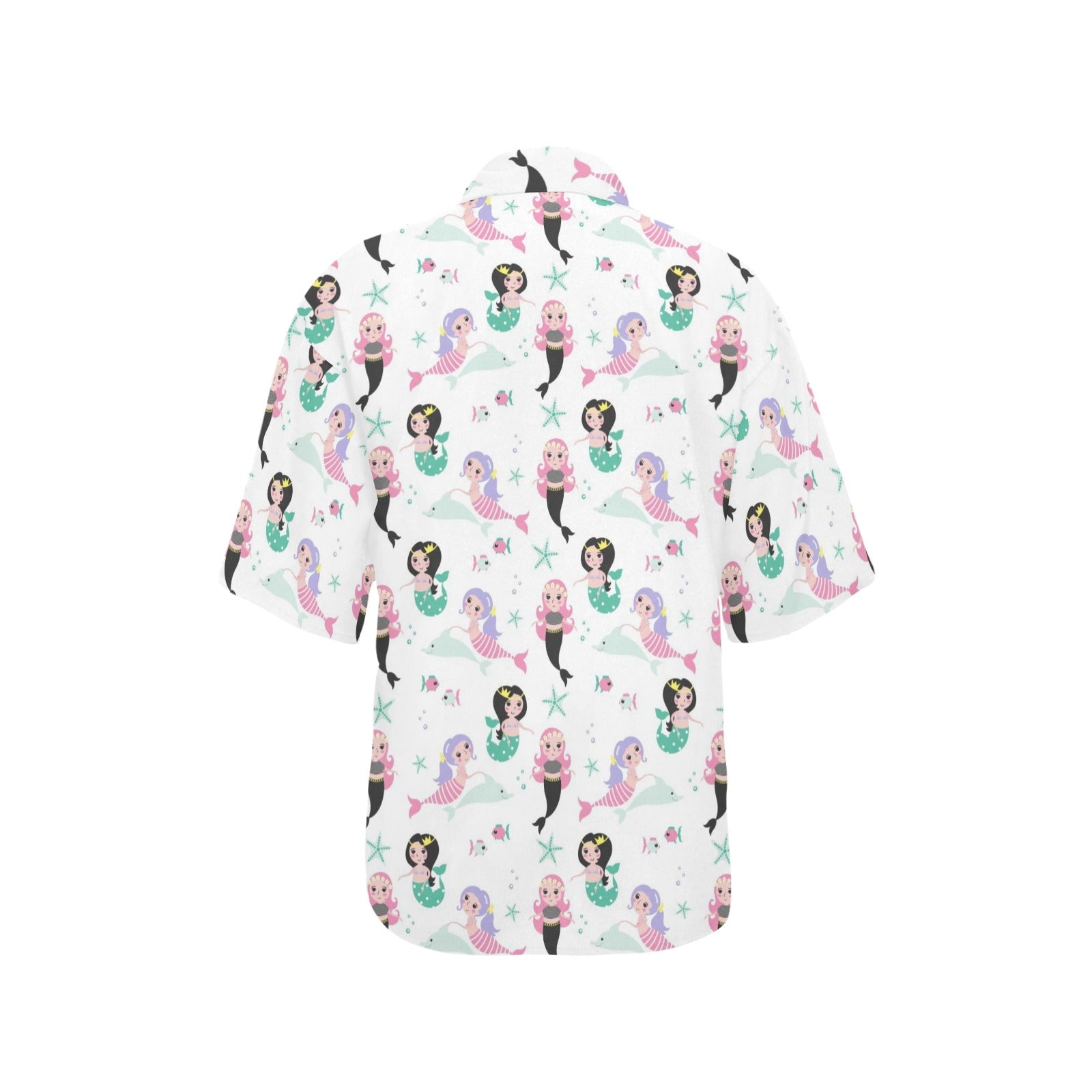 cute mermaid dolphin fish starfish pattern Women's All Over Print Hawaiian Shirt