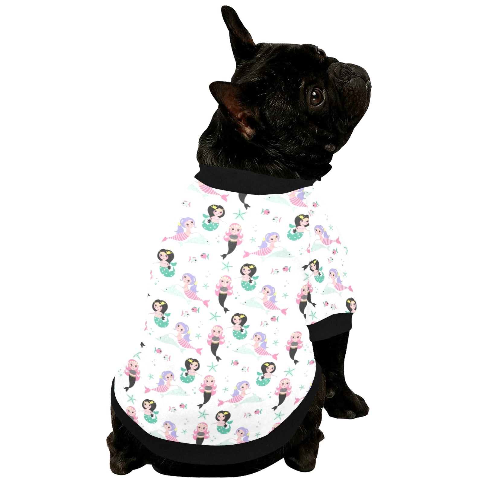 cute mermaid dolphin fish starfish pattern All Over Print Pet Dog Round Neck Fuzzy Shirt