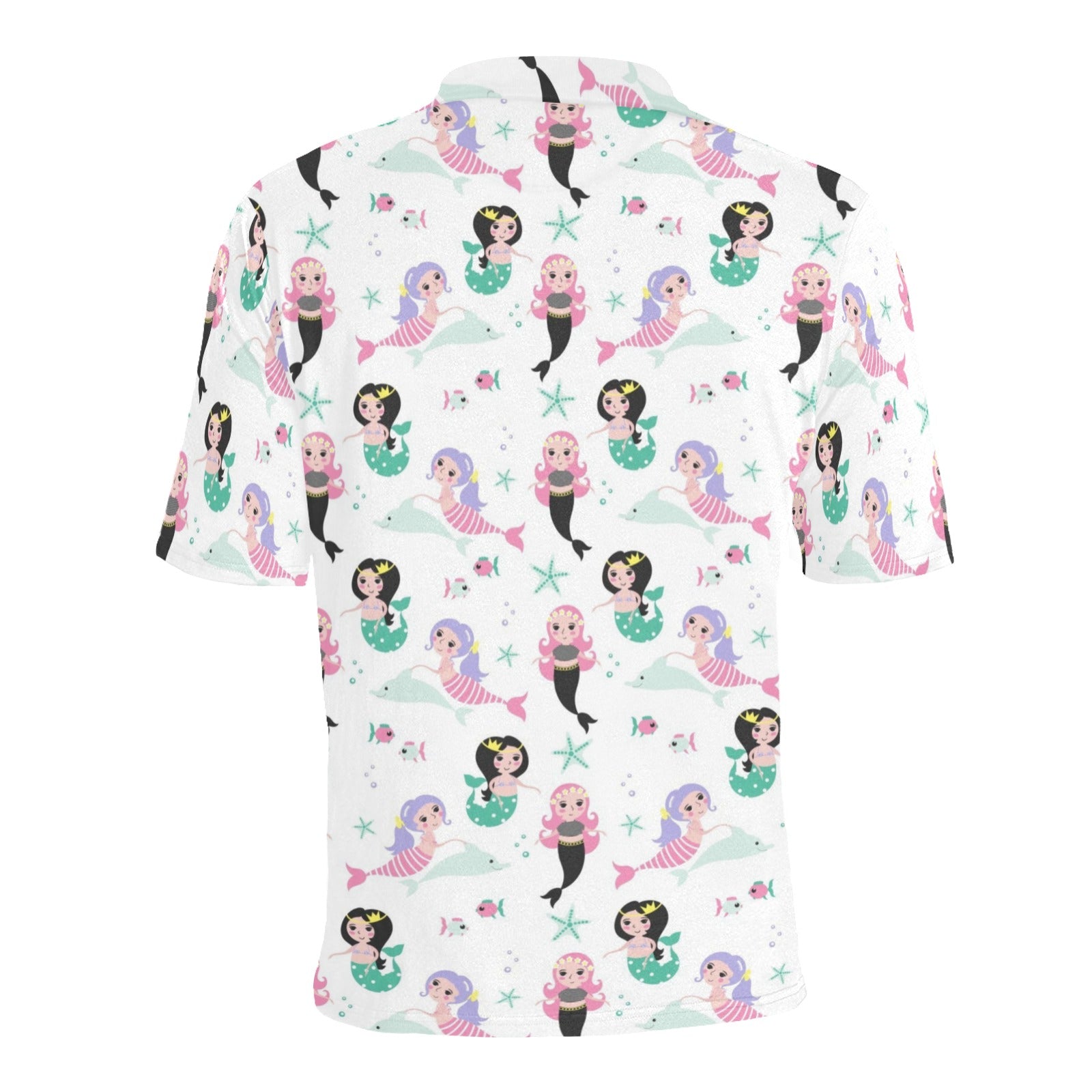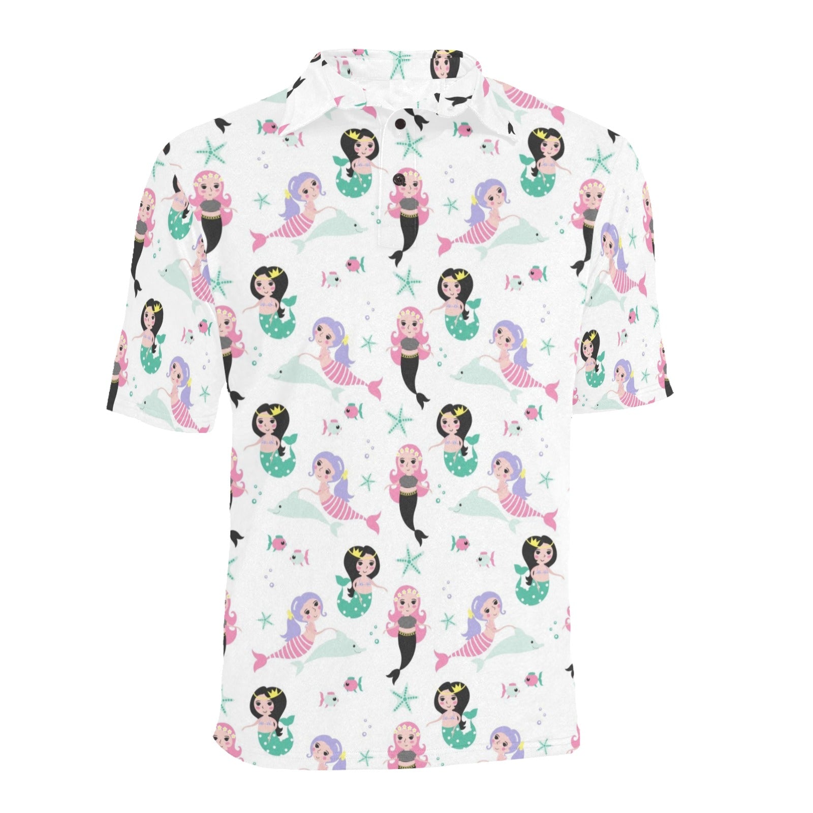 cute mermaid dolphin fish starfish pattern Men's All Over Print Polo Shirt