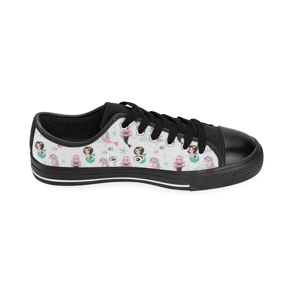 cute mermaid dolphin fish starfish pattern Men's Low Top Canvas Shoes Black