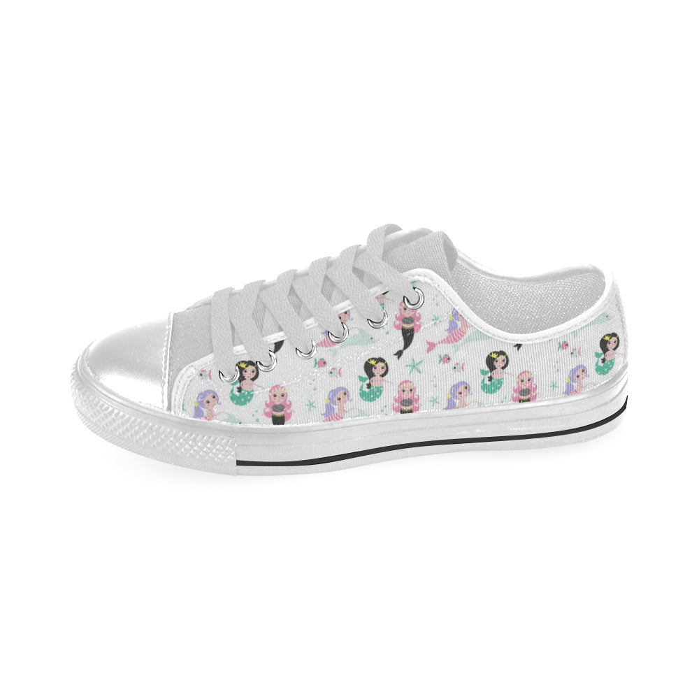 cute mermaid dolphin fish starfish pattern Men's Low Top Canvas Shoes White