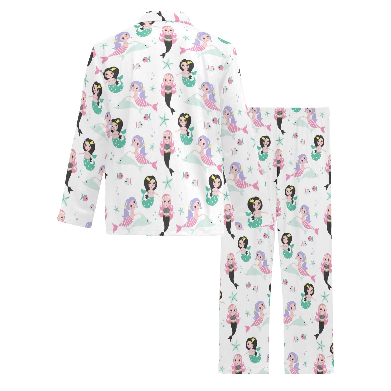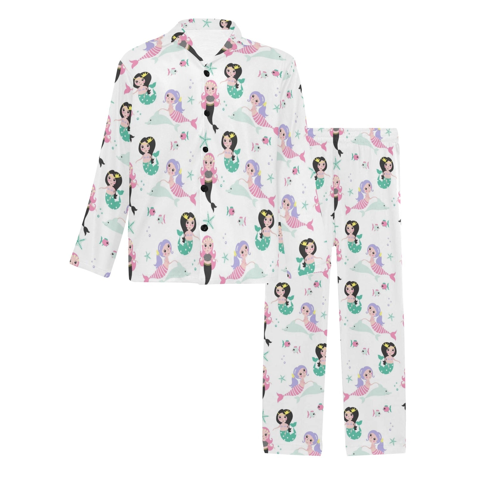 cute mermaid dolphin fish starfish pattern Men's Long Pajama Set