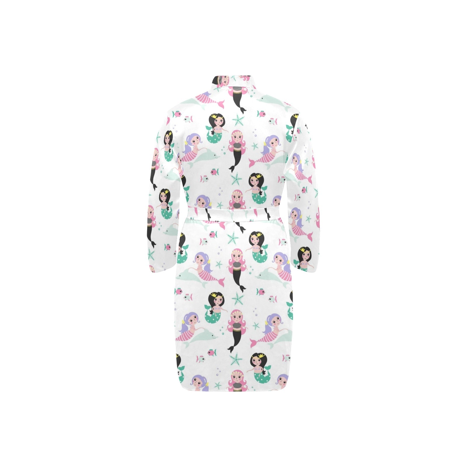 cute mermaid dolphin fish starfish pattern Men's Long Sleeve Belted Night Robe