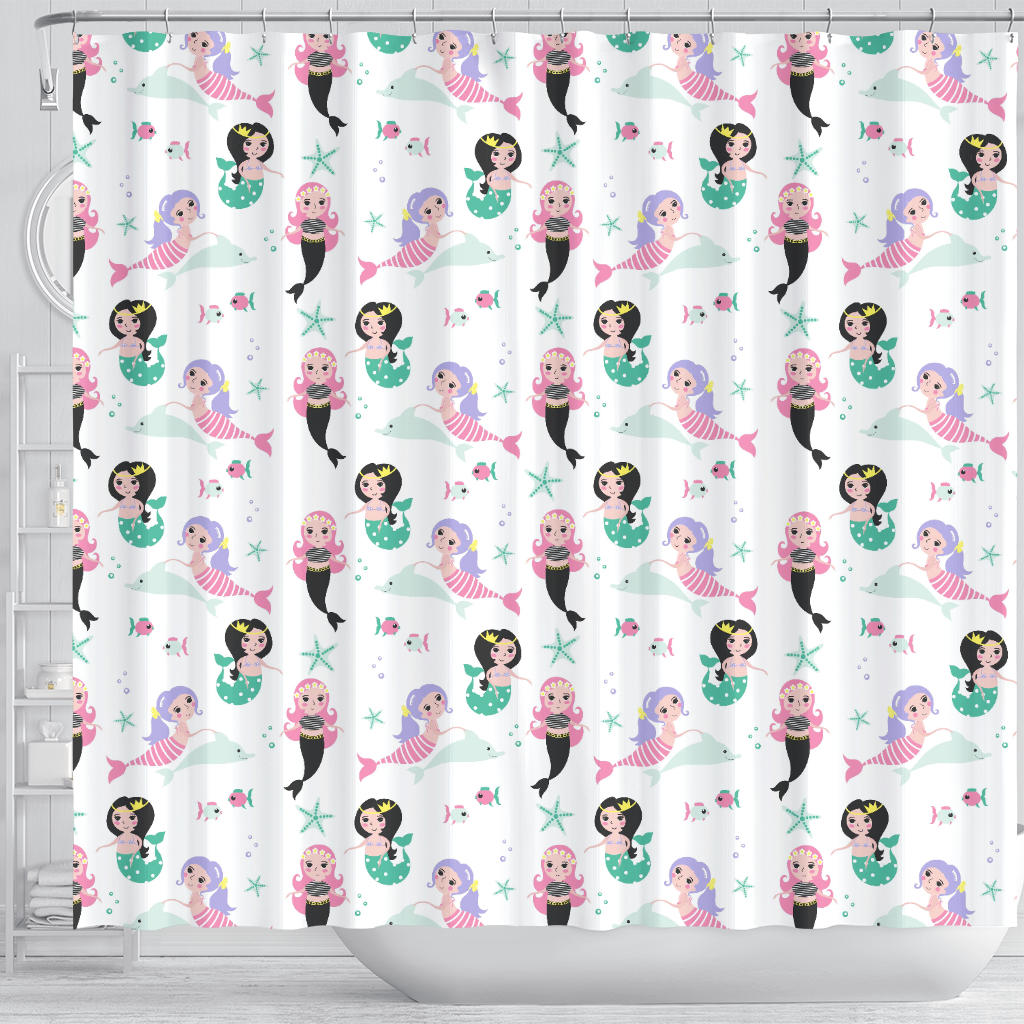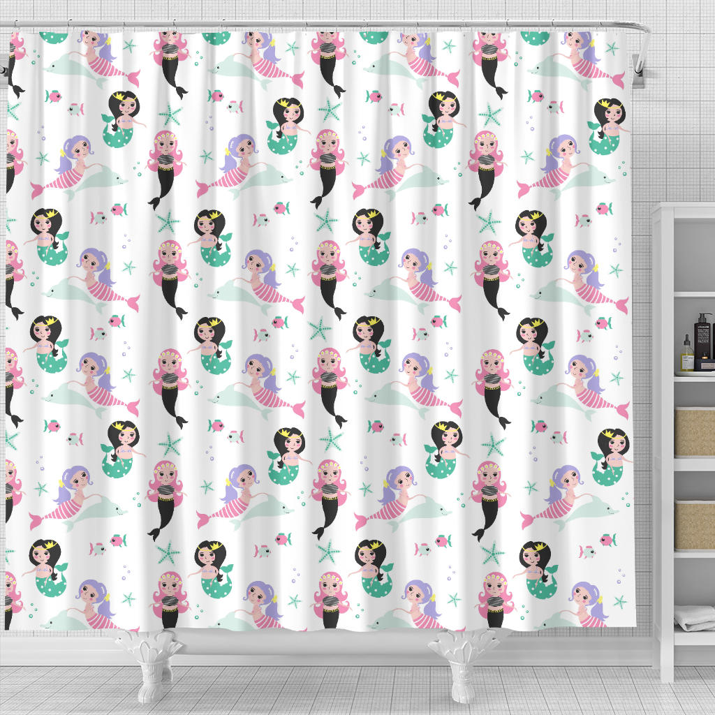 Cute Mermaid Dolphin Fish Starfish Pattern Shower Curtain Fulfilled In US