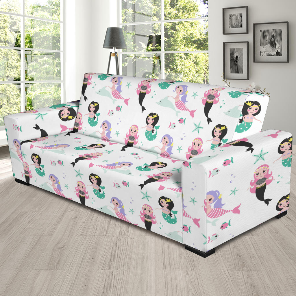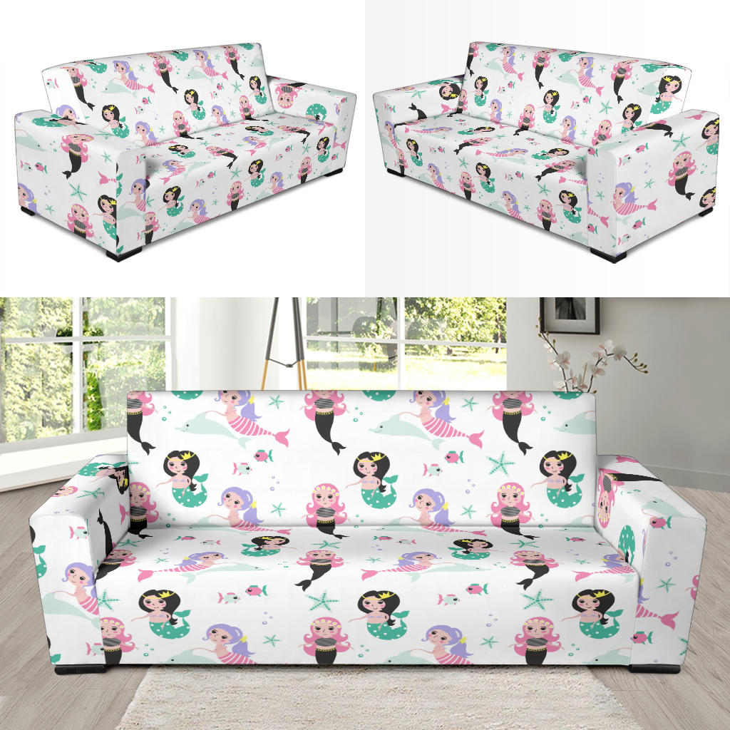cute mermaid dolphin fish starfish pattern Sofa Slipcover is a uniqued design and limited item. It made to order, hand printed, and sewn with love in our factory.