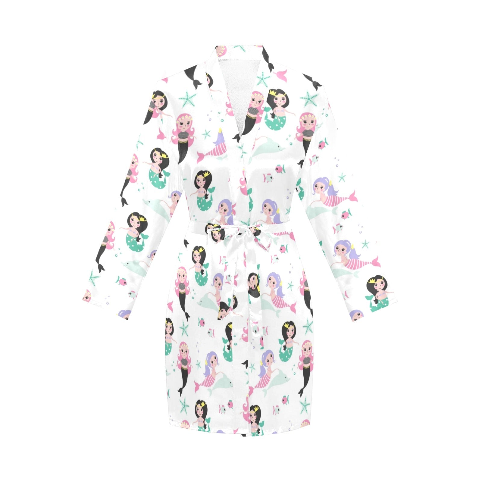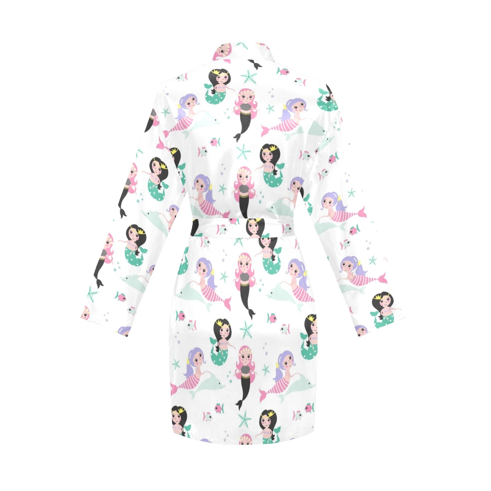 cute mermaid dolphin fish starfish pattern Women's Long Sleeve Belted Night Robe