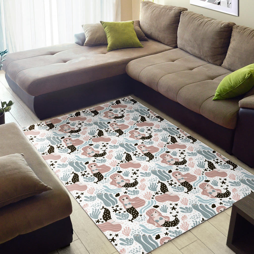 cute mermaid pattern Area Rug is a uniqued design and limited item. It made to order, hand printed, and sewn with love in our factory.