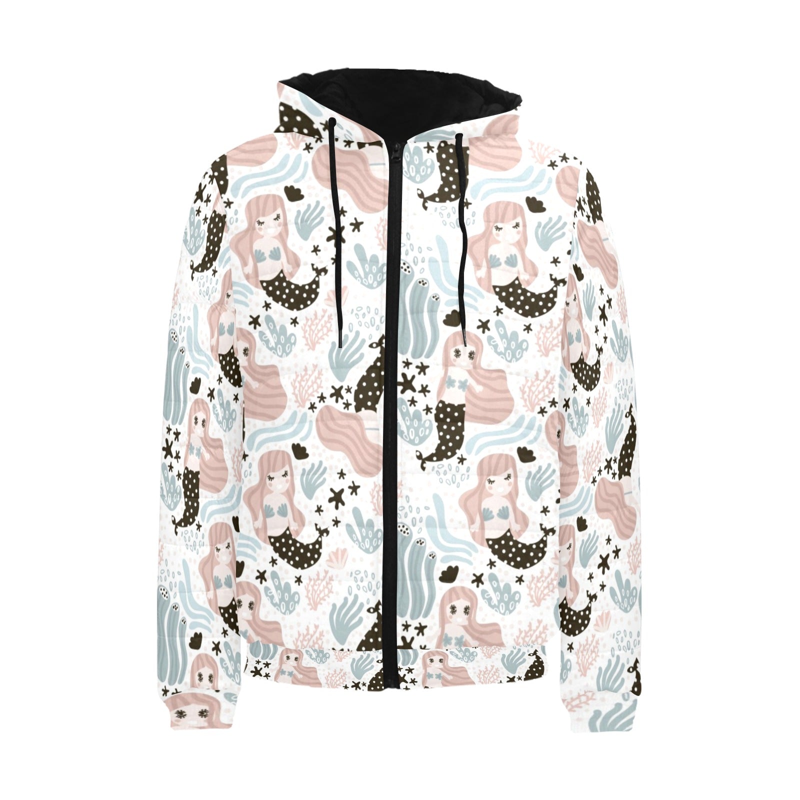 cute mermaid pattern Men's Padded Hooded Jacket