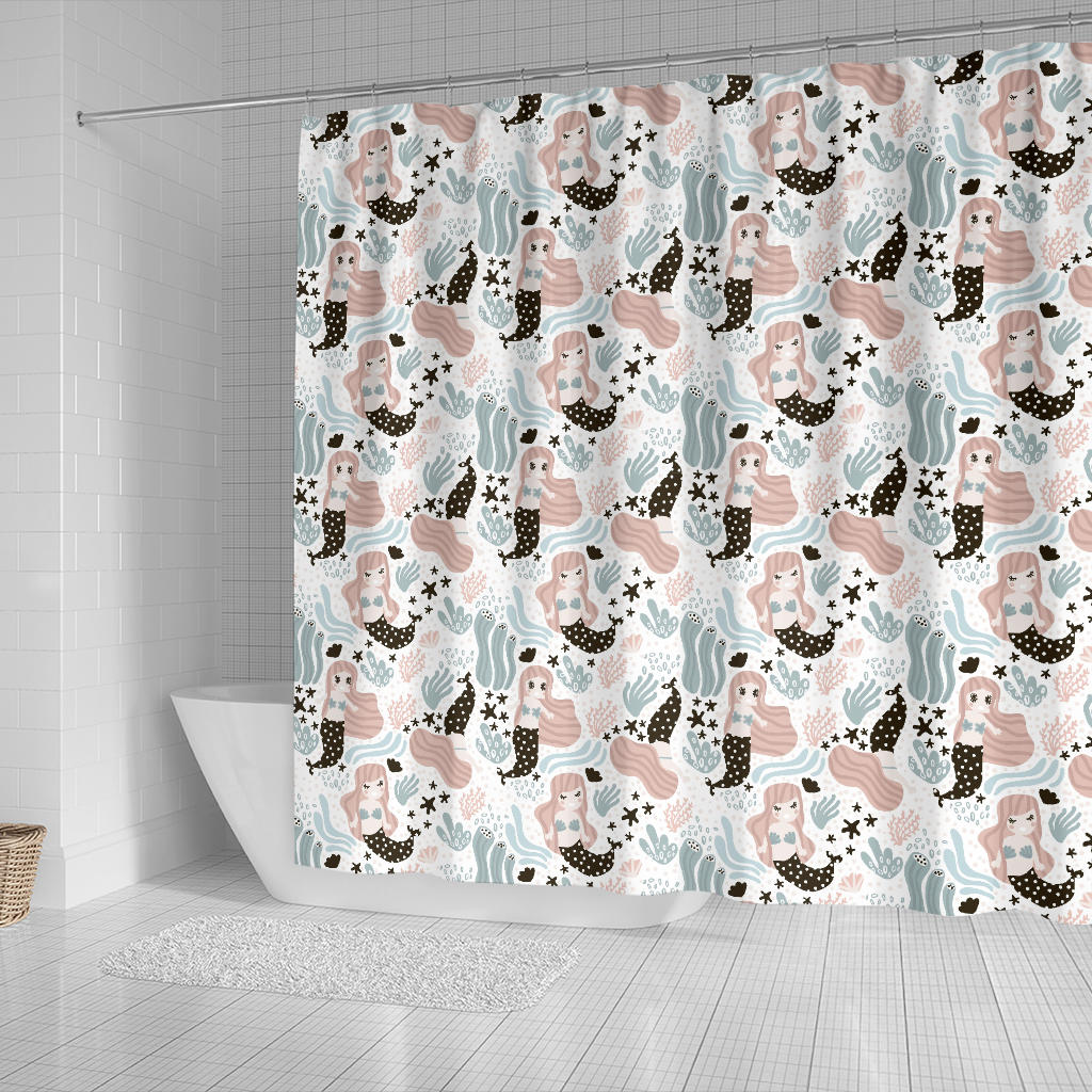 cute mermaid pattern Shower Curtain is a uniqued design and limited item. It made to order, hand printed, and sewn with love in our factory.