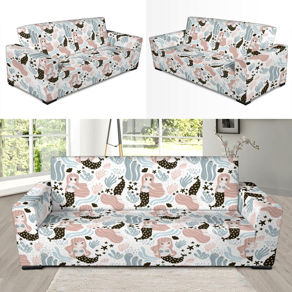 cute mermaid pattern Sofa Slipcover is a uniqued design and limited item. It made to order, hand printed, and sewn with love in our factory.