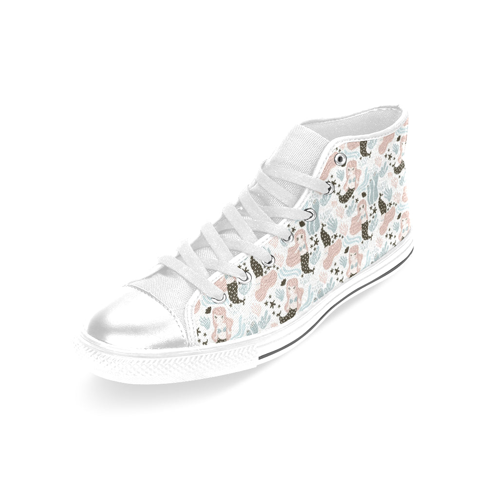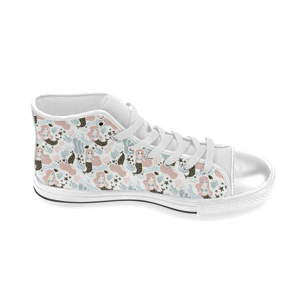 cute mermaid pattern Women's High Top Canvas Shoes White