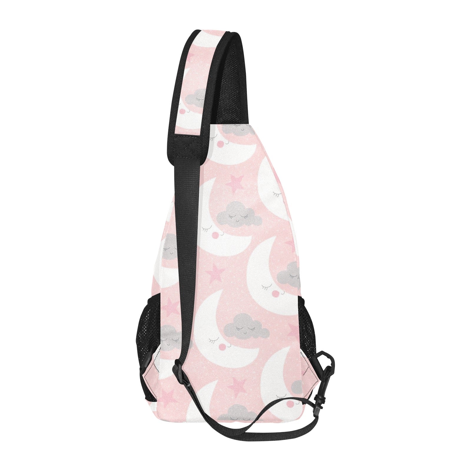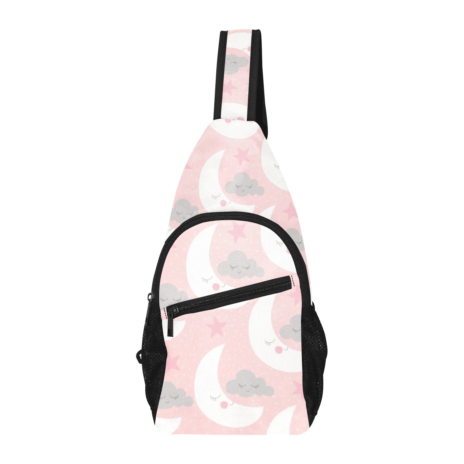 Cute moon cloud star pattern pink dot background All Over Print Chest Bag