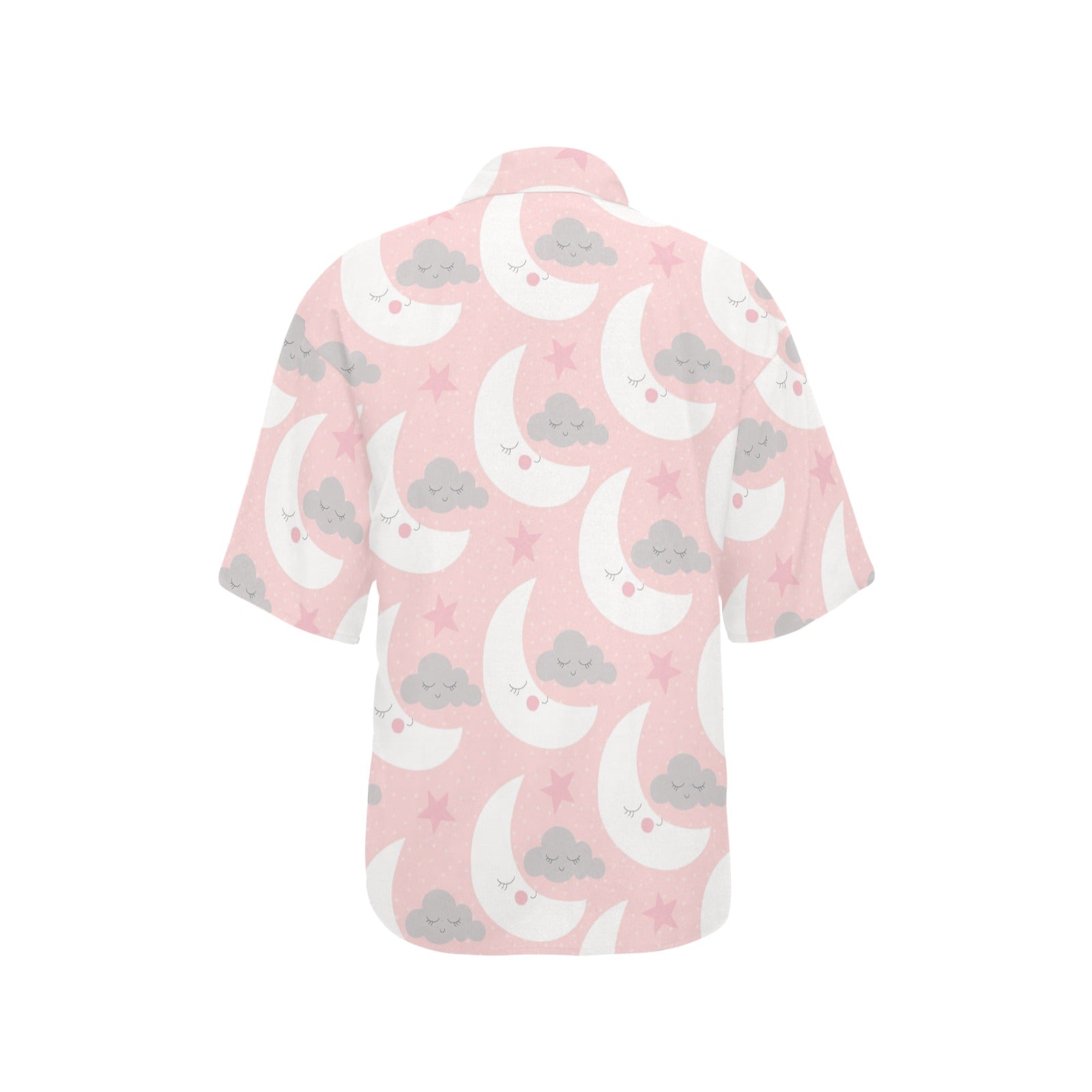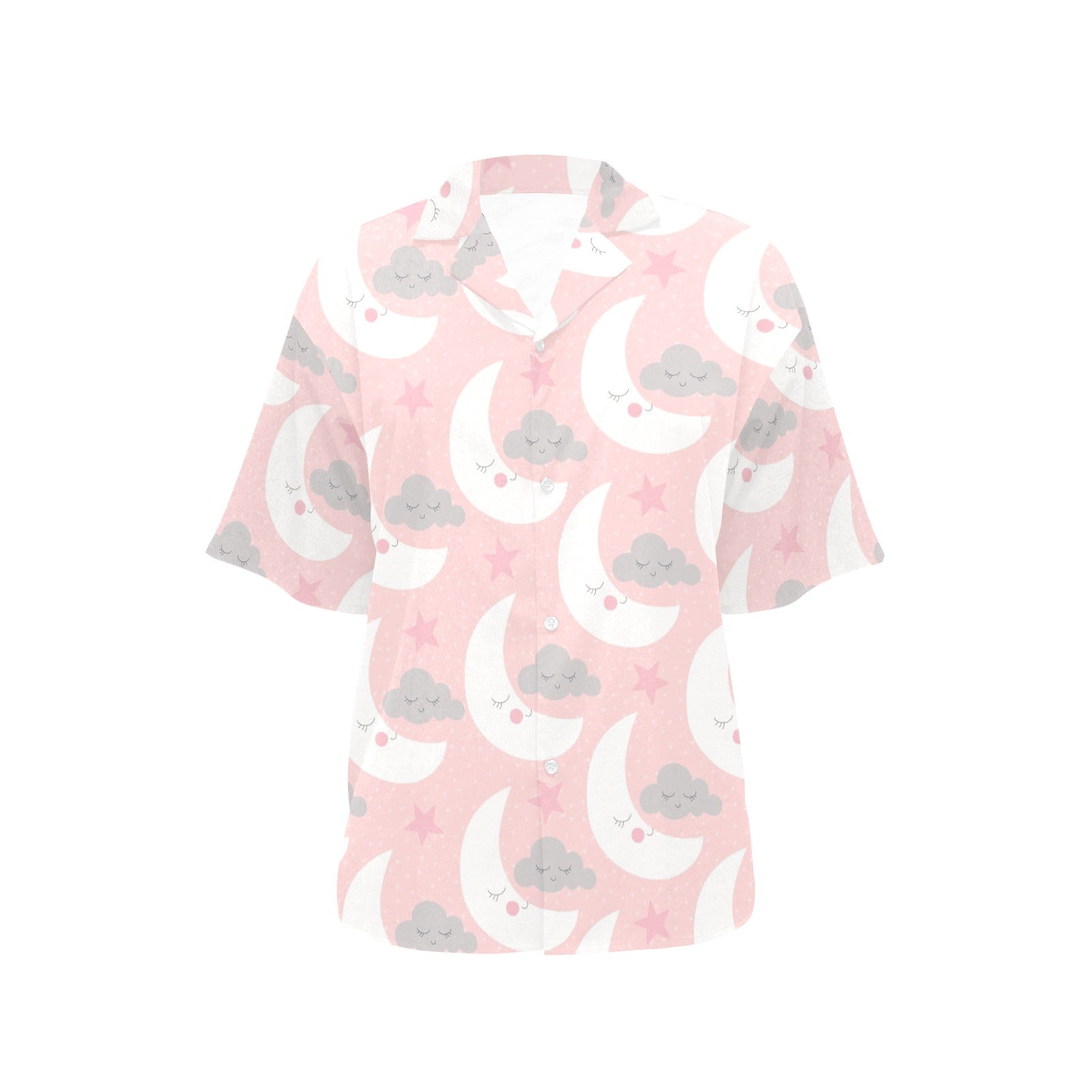 Cute moon cloud star pattern pink dot background Women's All Over Print Hawaiian Shirt