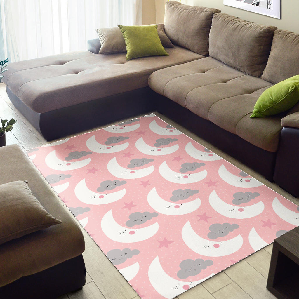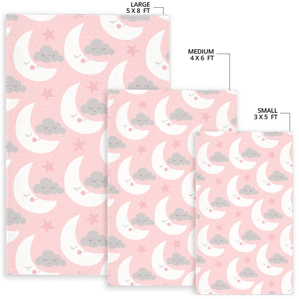 Cute moon cloud star pattern pink dot background Area Rug is a uniqued design and limited item. It made to order, hand printed, and sewn with love in our factory.