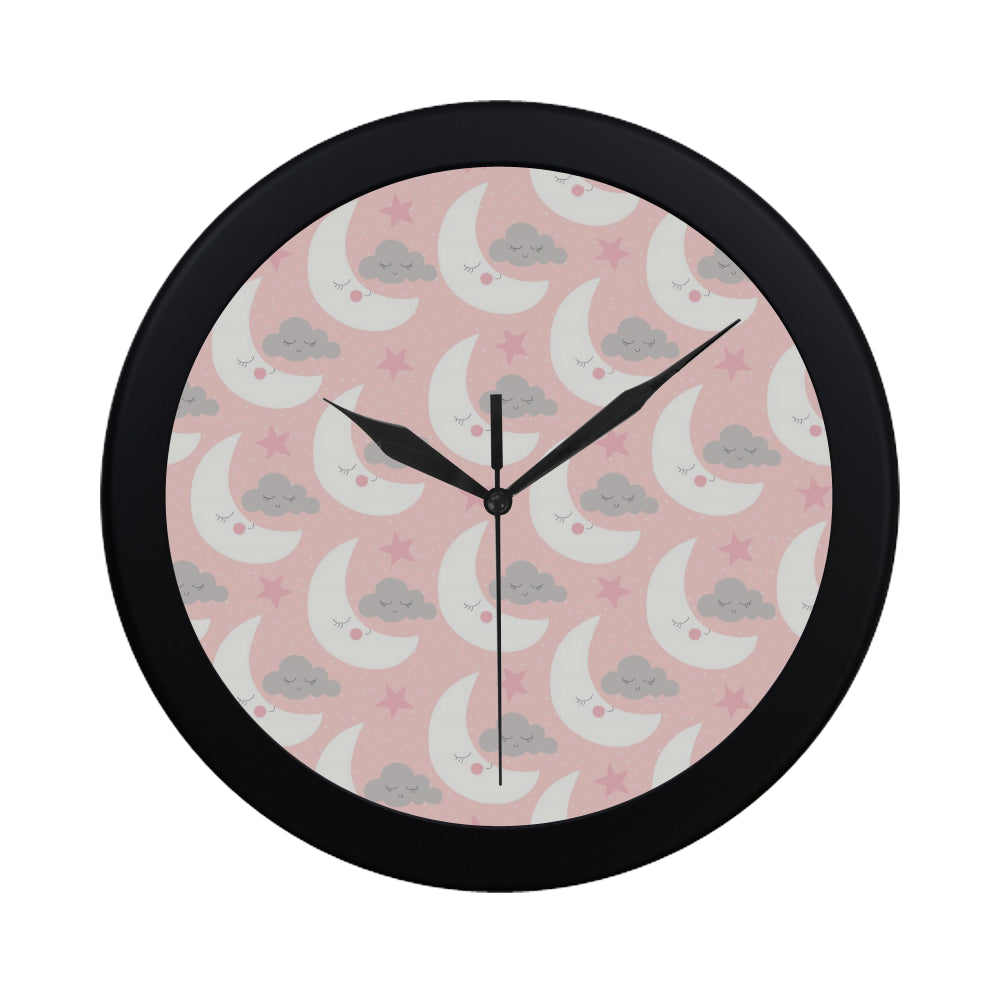 Cute moon cloud star pattern pink dot background Elegant Black Wall Clock