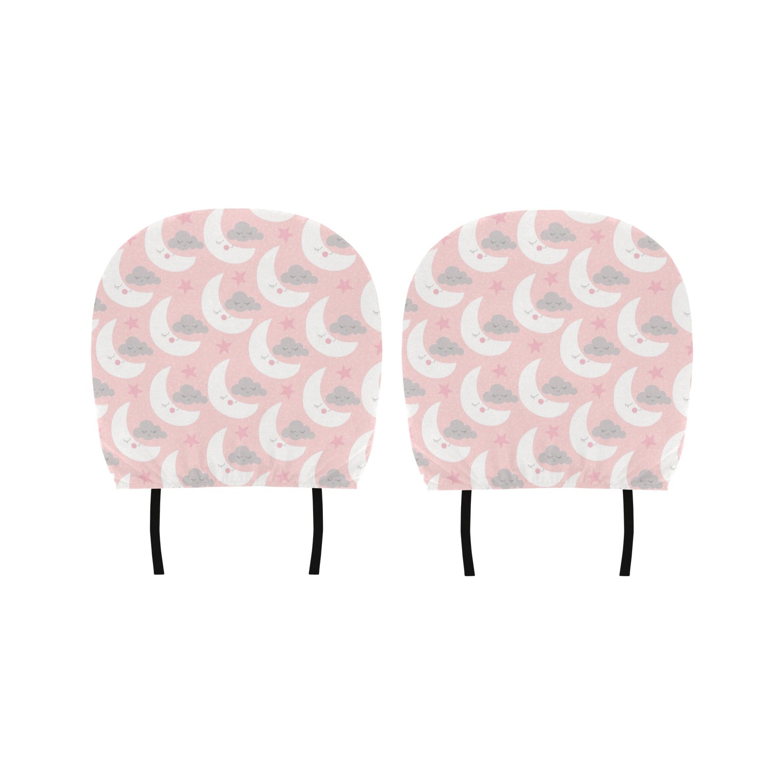 Cute moon cloud star pattern pink dot background Car Headrest Cover