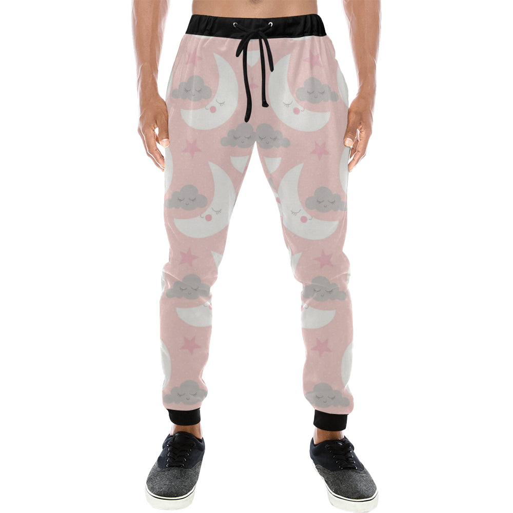 Cute moon cloud star pattern pink dot background Unisex Casual Sweatpants