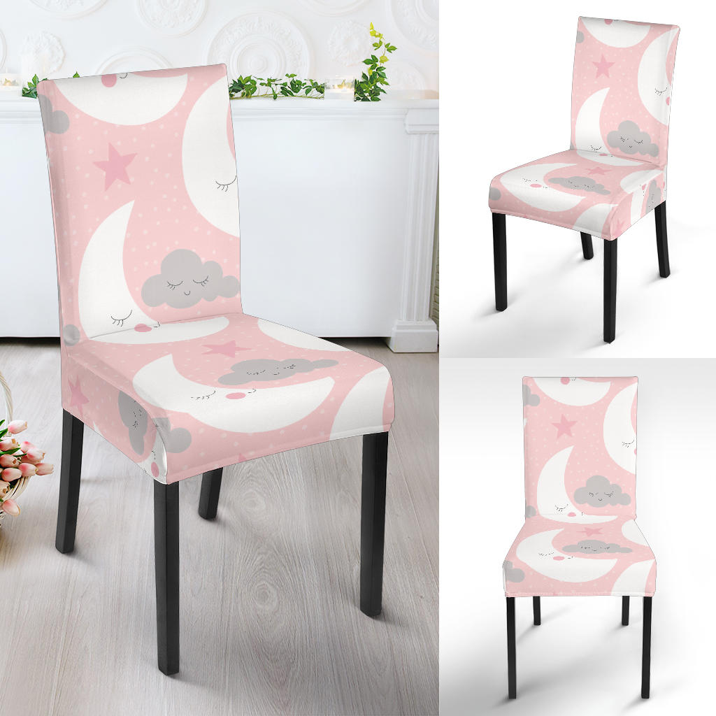 Cute Moon Cloud Star Pattern Pink Dot Background Dining Chair Slipcover