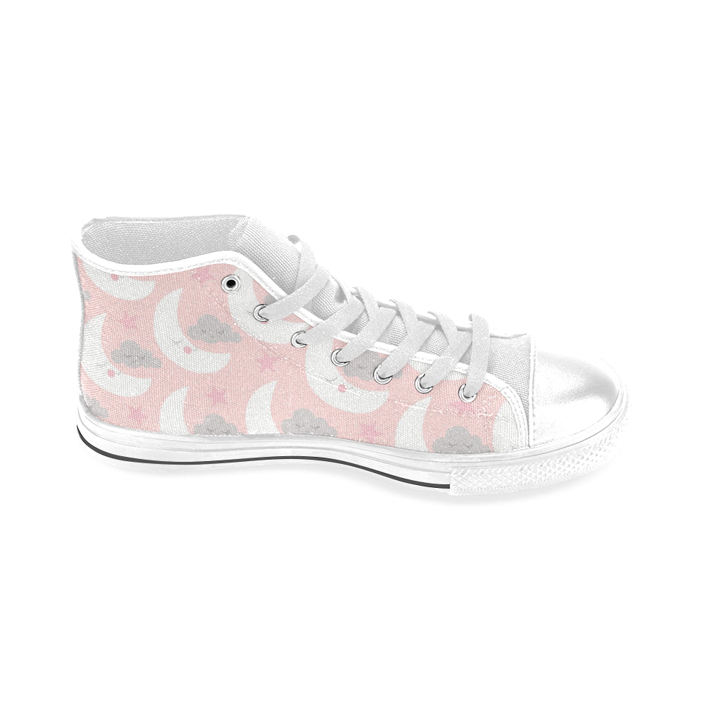 Cute moon cloud star pattern pink dot background Men's High Top Canvas Shoes White
