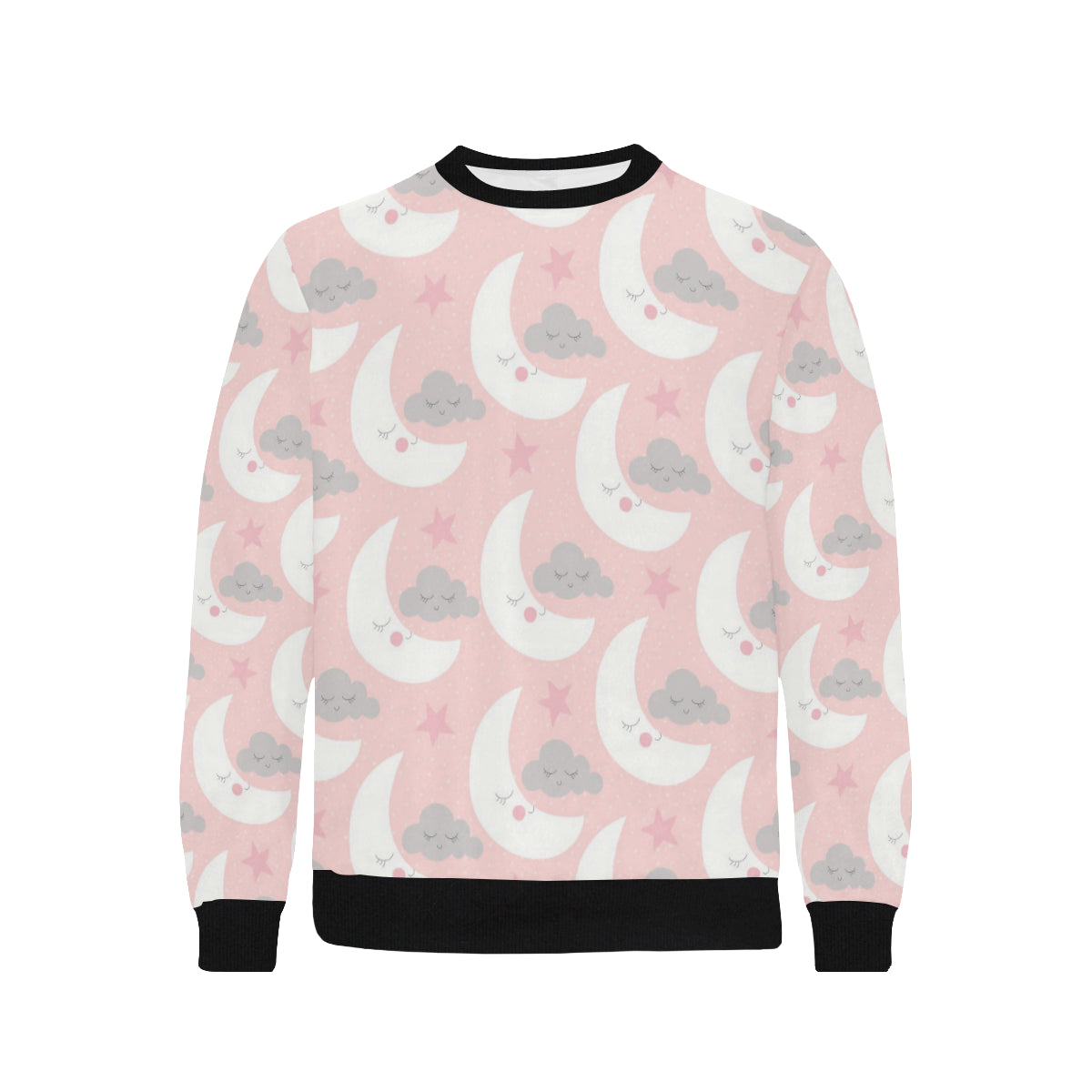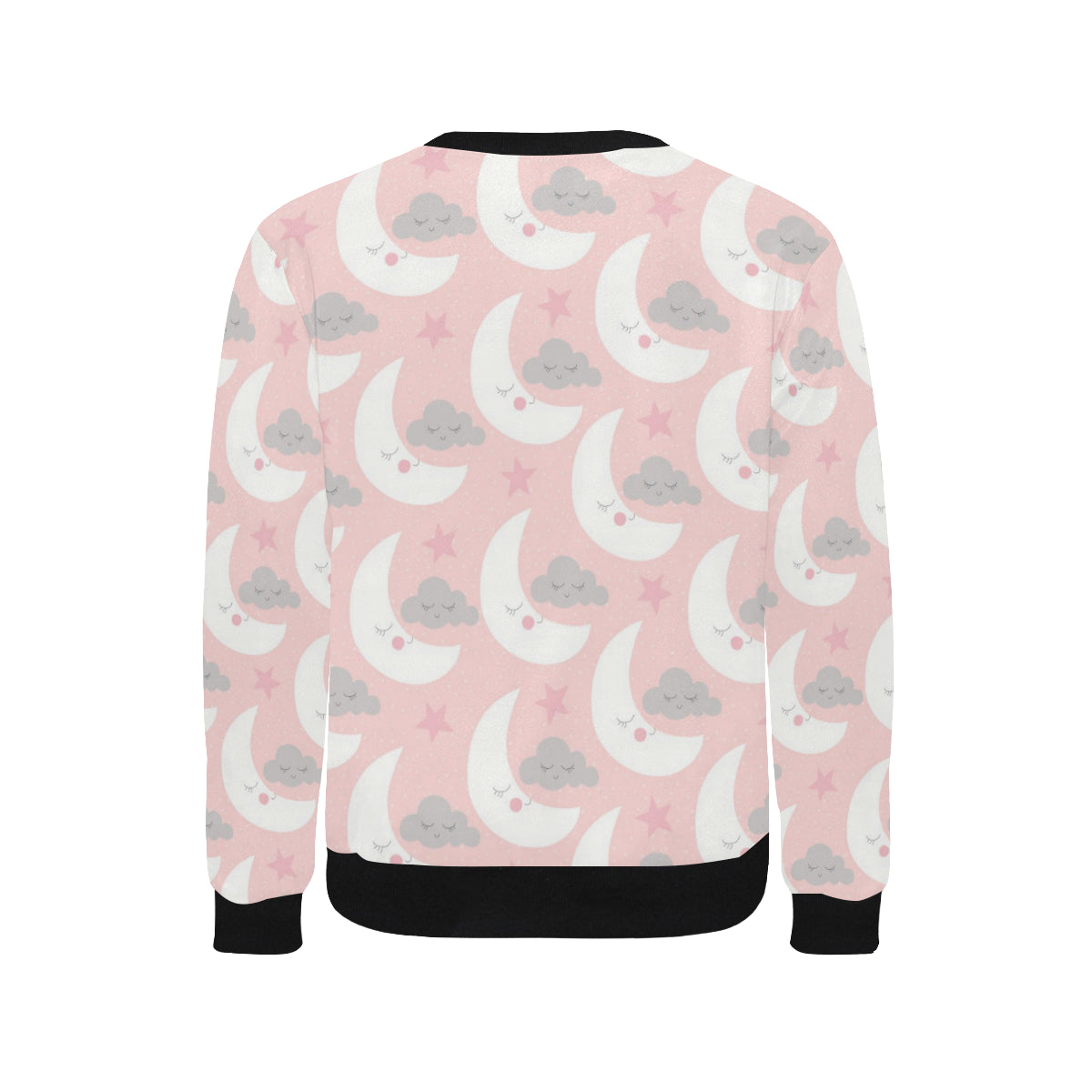 Cute moon cloud star pattern pink dot background Men's Crew Neck Sweatshirt