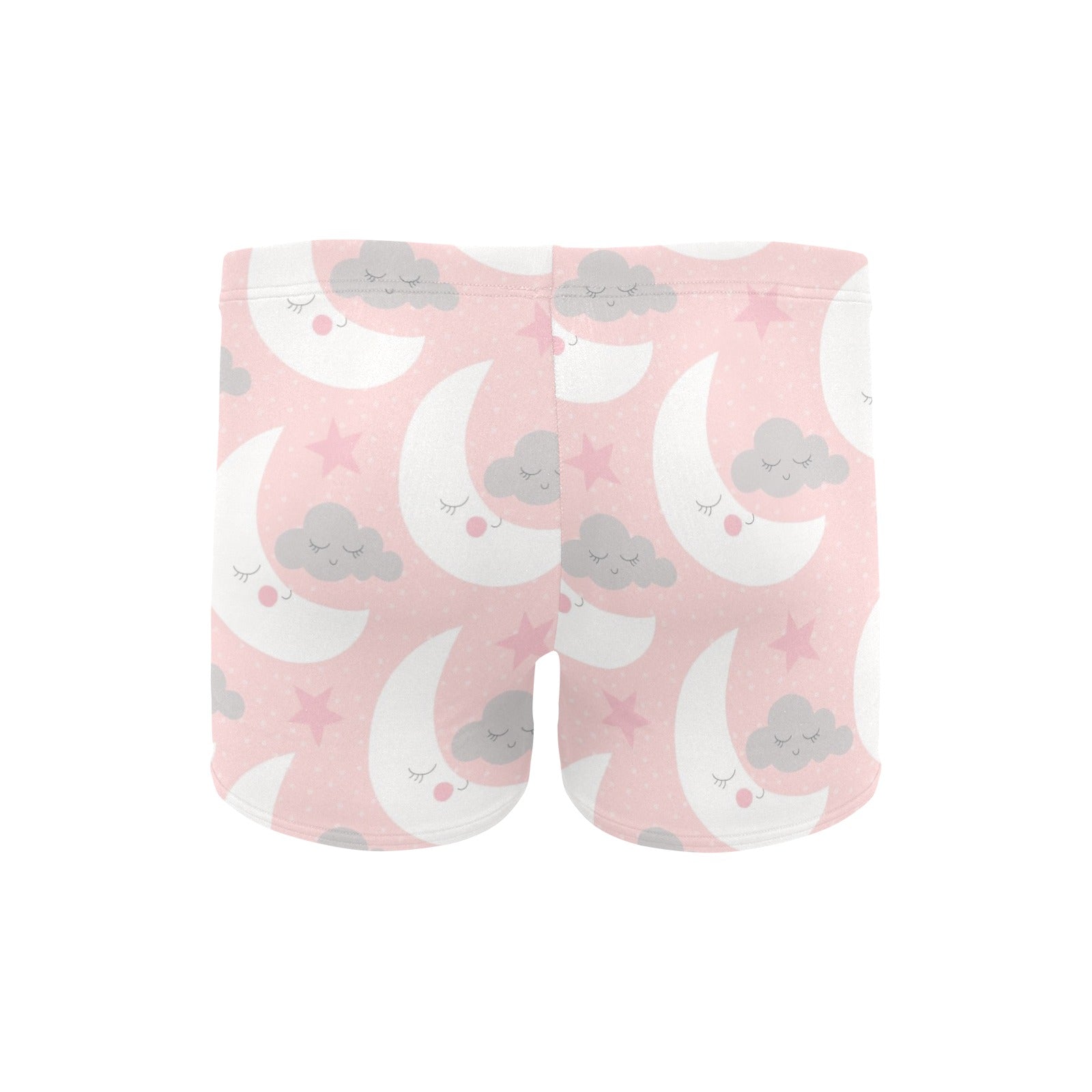 Cute moon cloud star pattern pink dot background Men's Swimming Trunks