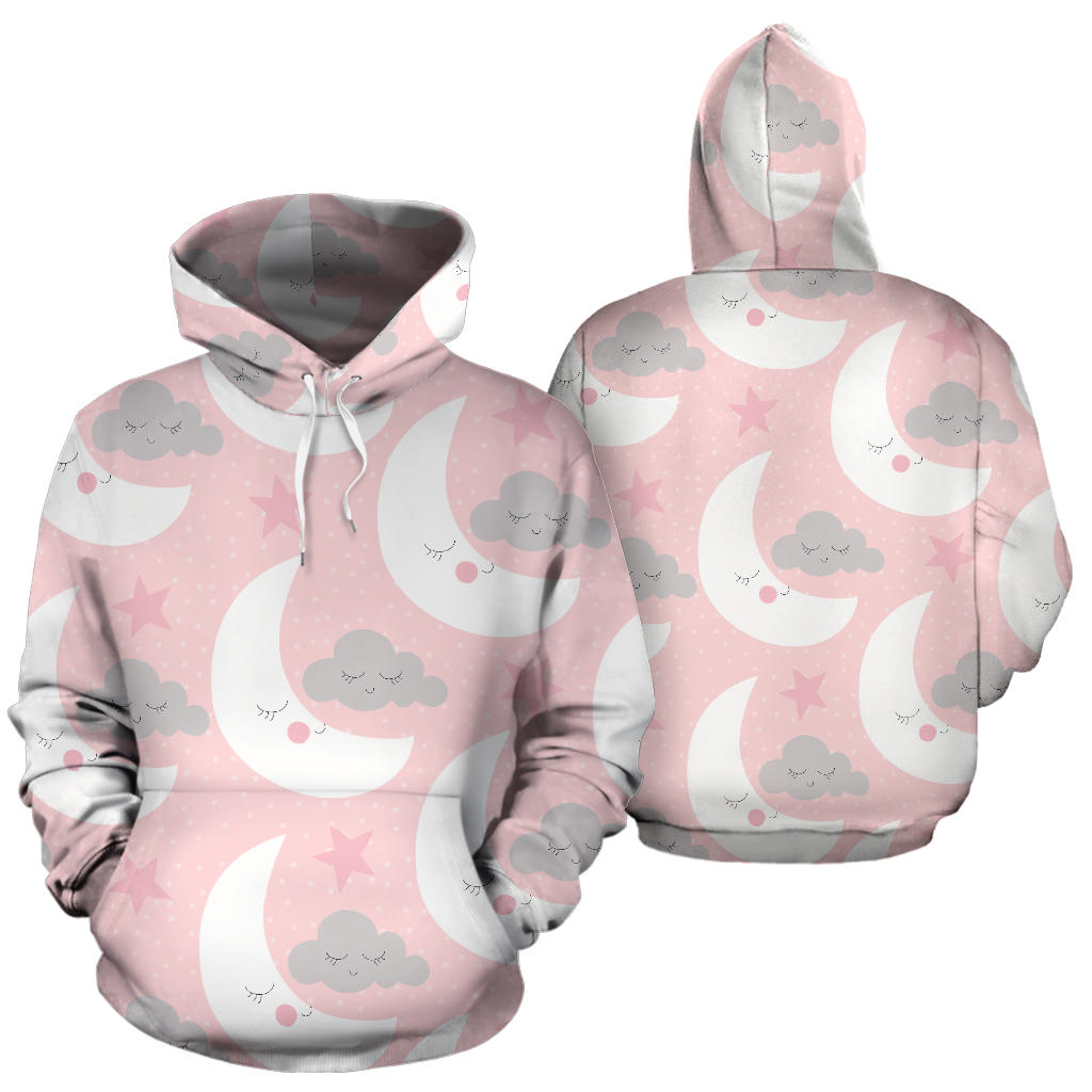 Cute Moon Cloud Star Pattern Pink Dot Background Men Women Pullover Hoodie