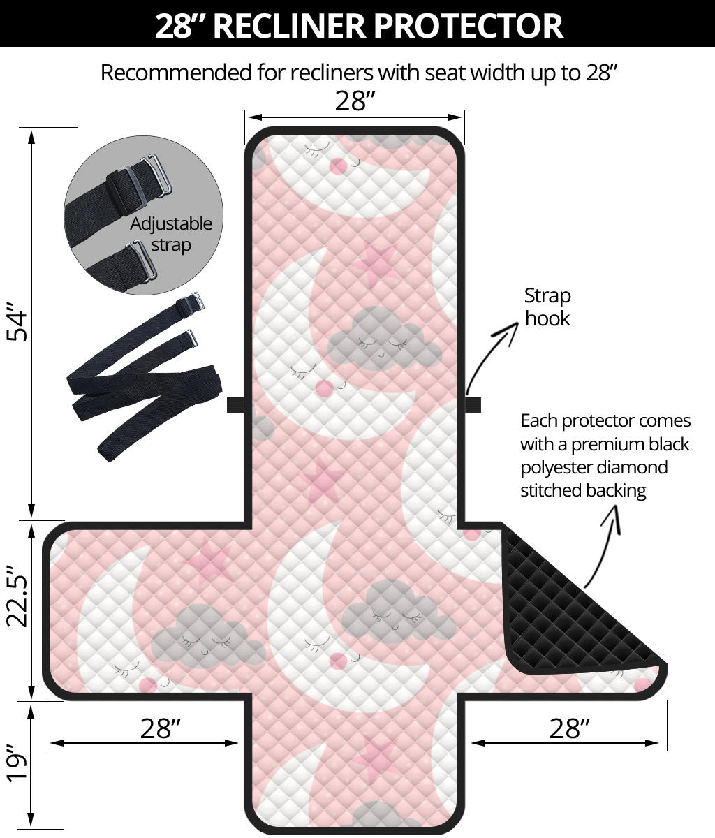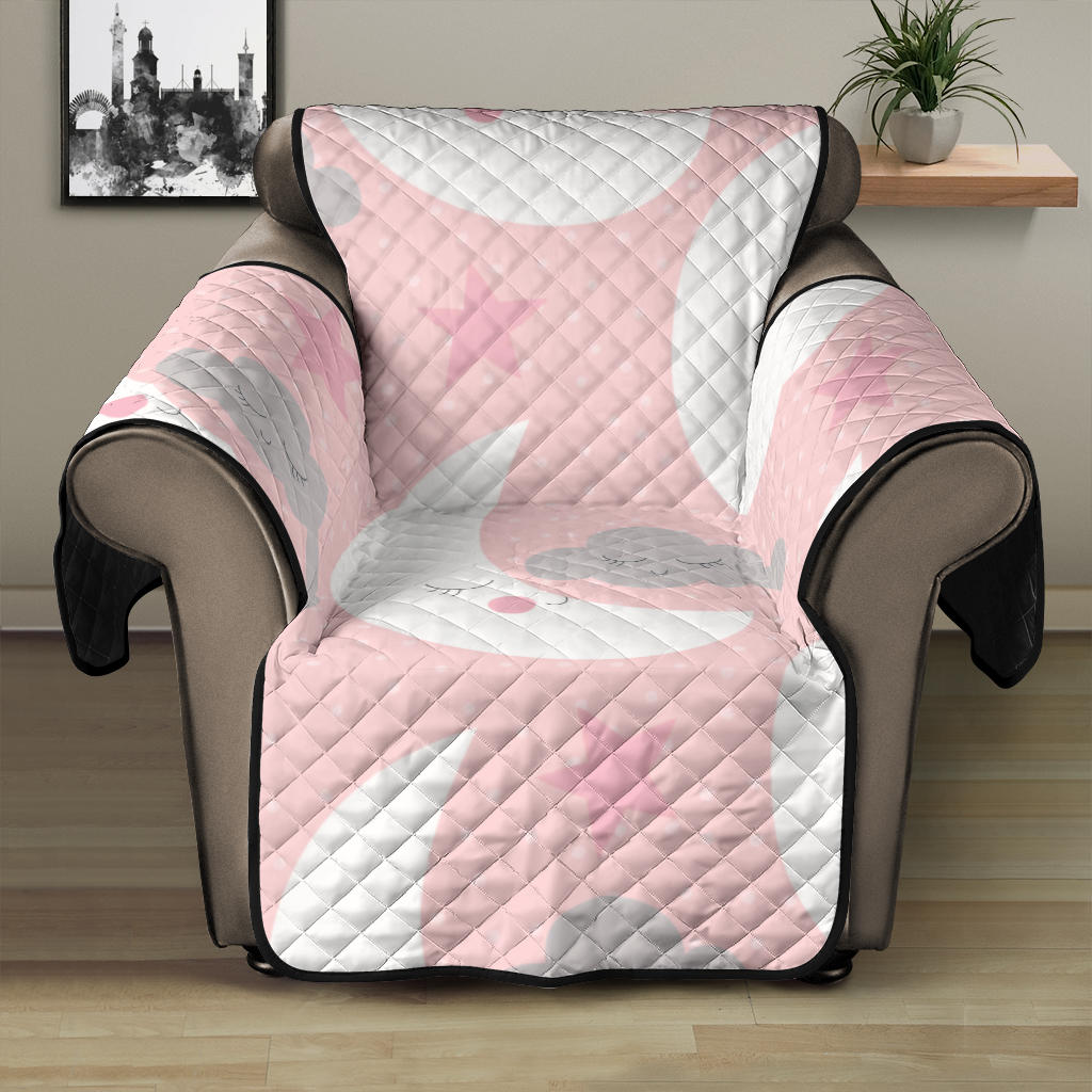 Cute moon cloud star pattern pink dot background Recliner Cover Protector