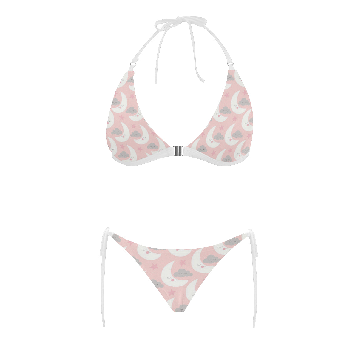 Cute moon cloud star pattern pink dot background Sexy Bikinis Two-Piece Swimsuits are uniqued design and limited item. It made to order, hand printed, and sewn with love in our factory.