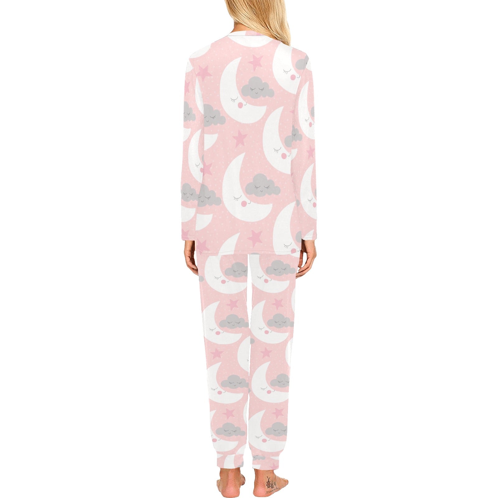 Cute moon cloud star pattern pink dot background Women's All Over Print Pajama Set