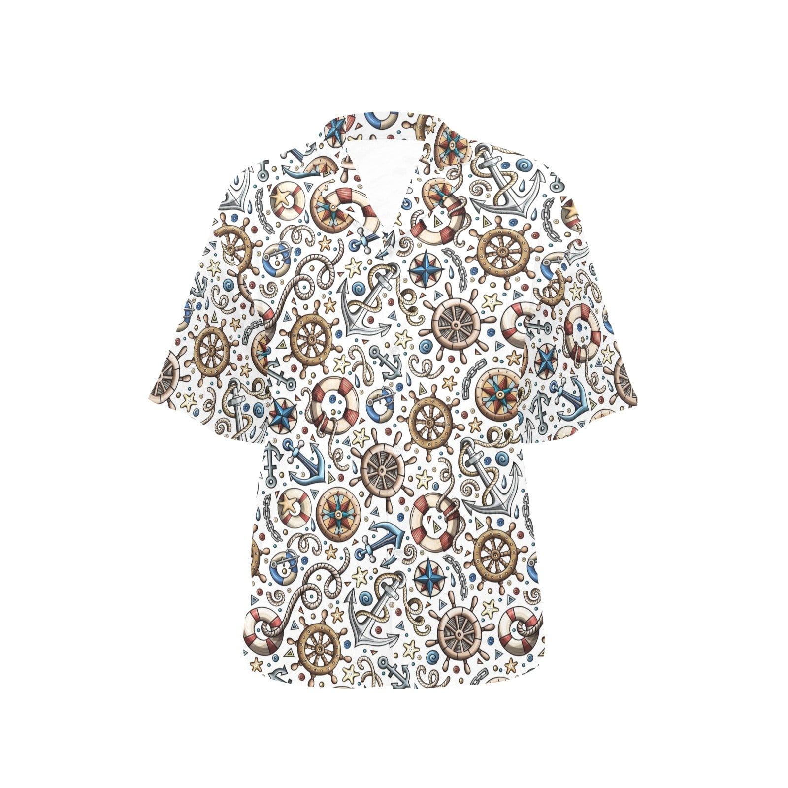 Cute nautical steering wheel anchor pattern Women's All Over Print Hawaiian Shirt