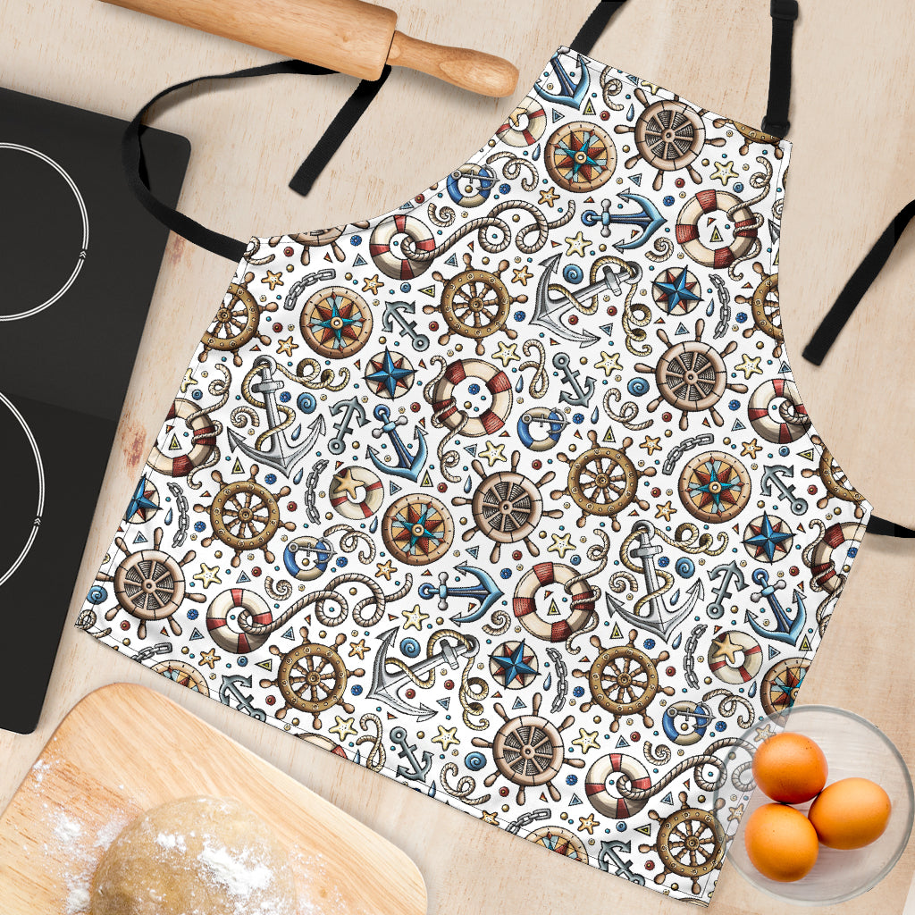 Cute Nautical Steering Wheel Anchor Pattern Adjustable Apron