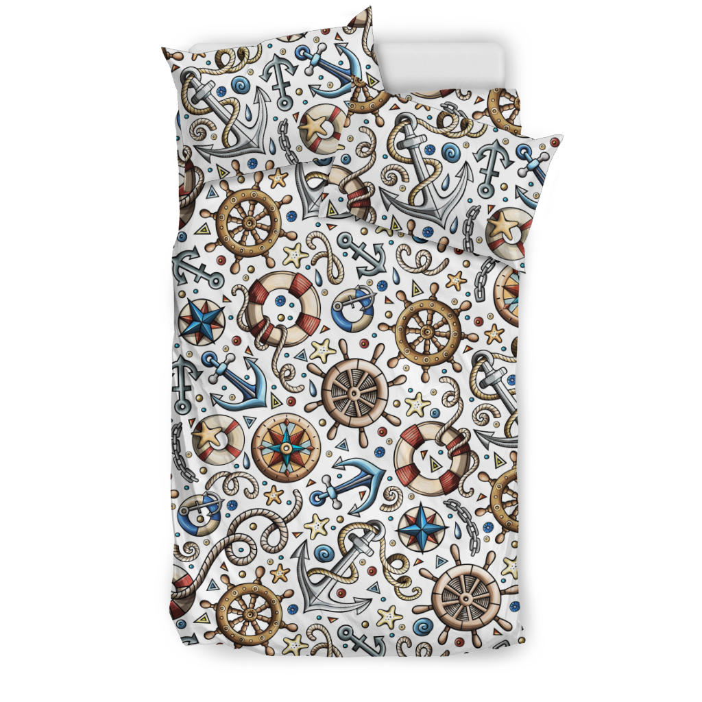 Cute nautical steering wheel anchor pattern Bedding Set is a uniqued design and limited item. It made to order, hand printed, and sewn with love in our factory.