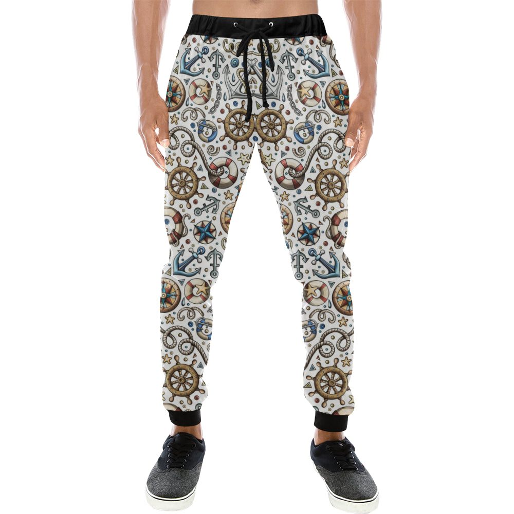 Cute nautical steering wheel anchor pattern Unisex Casual Sweatpants