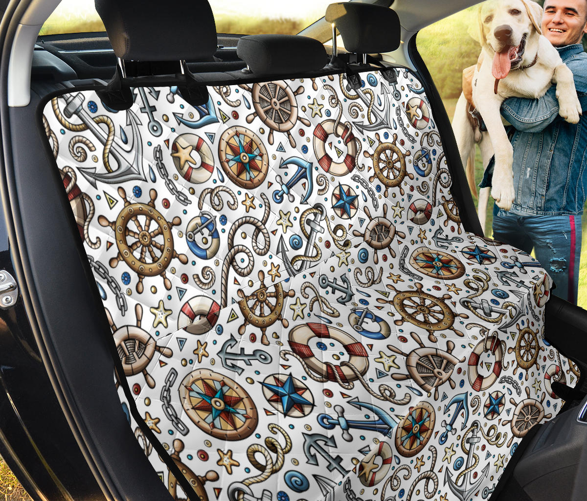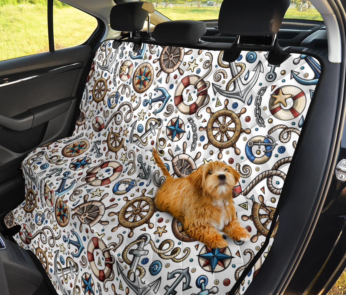 Cute Nautical Steering Wheel Anchor Pattern Dog Car Seat Covers
