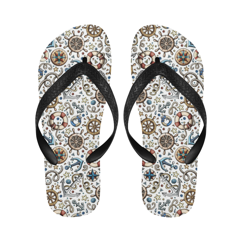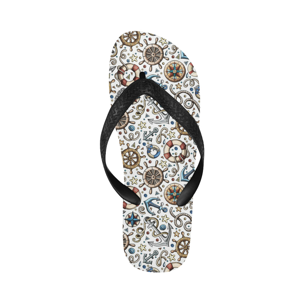 Cute nautical steering wheel anchor pattern Unisex Flip Flops