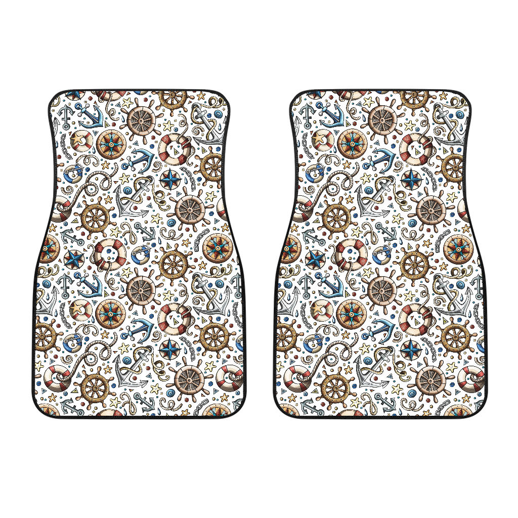Cute Nautical Steering Wheel Anchor Pattern Front Car Mats