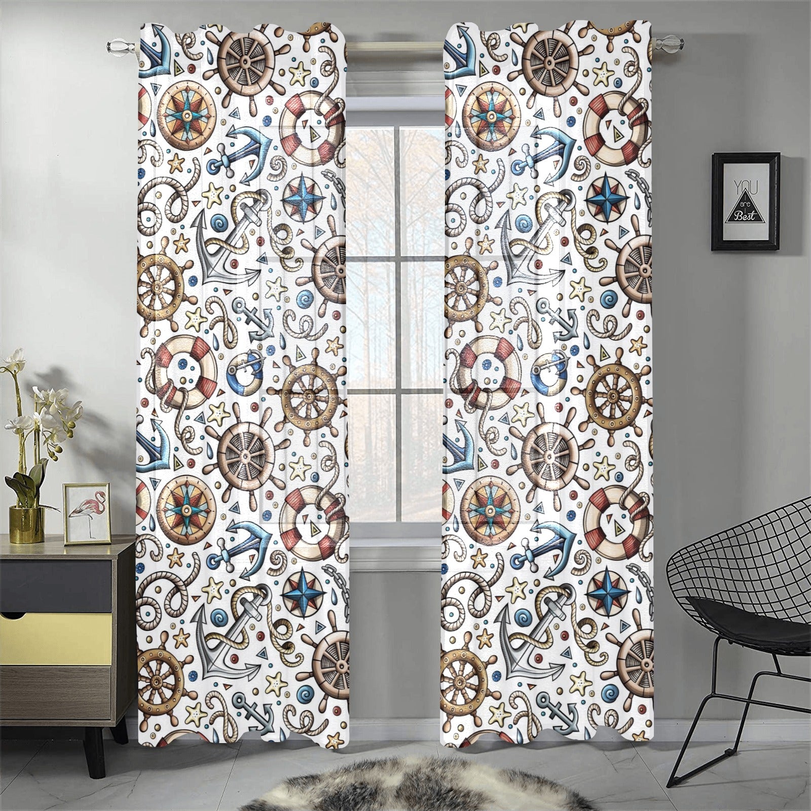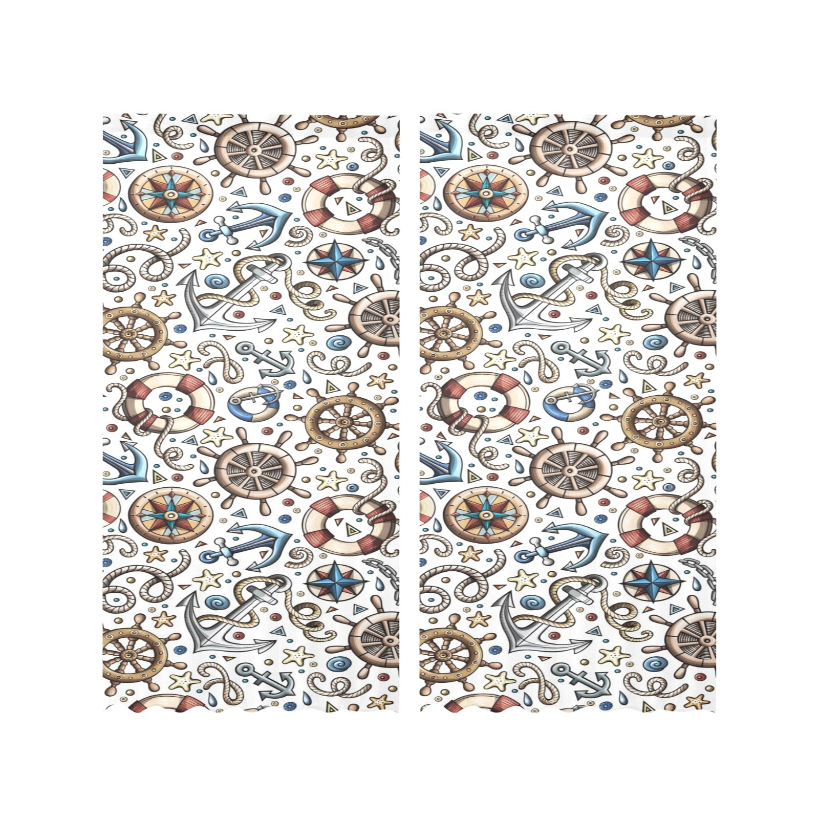 Cute nautical steering wheel anchor pattern Gauze Curtain