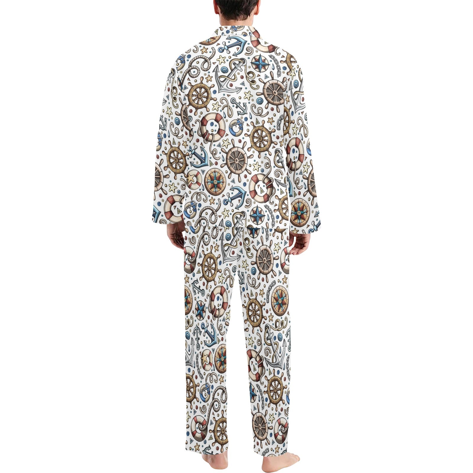 Cute nautical steering wheel anchor pattern Men's Long Pajama Set
