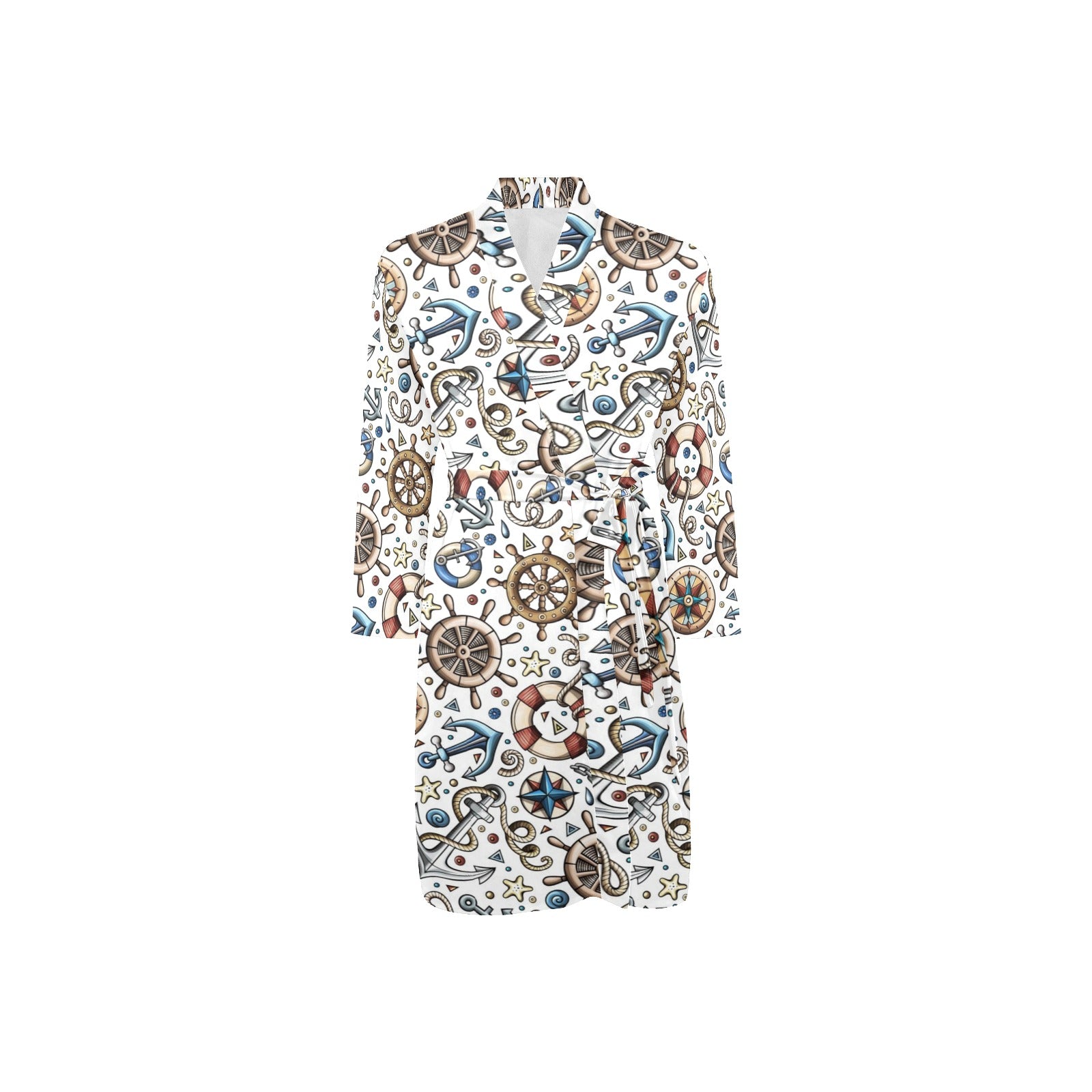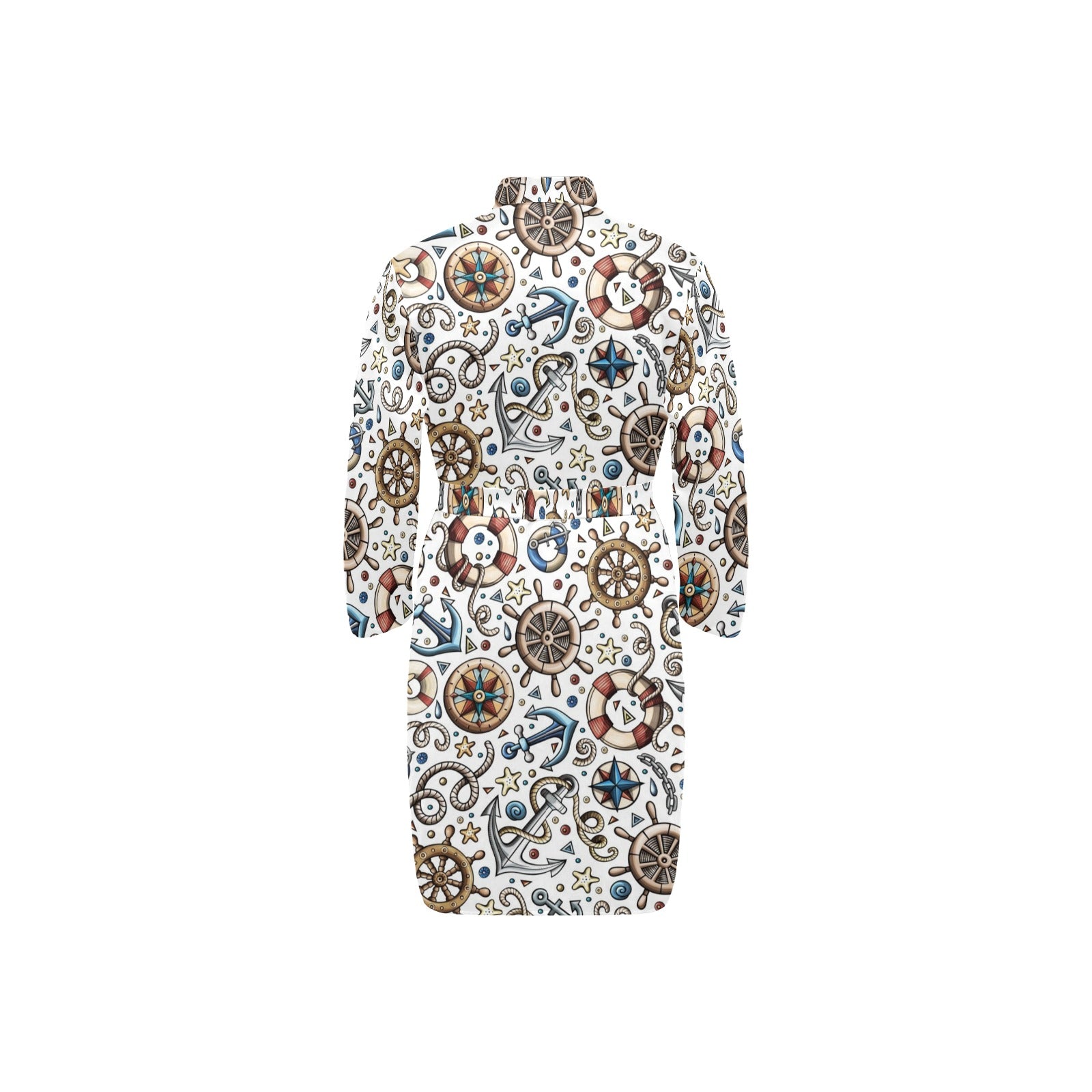Cute nautical steering wheel anchor pattern Men's Long Sleeve Belted Night Robe