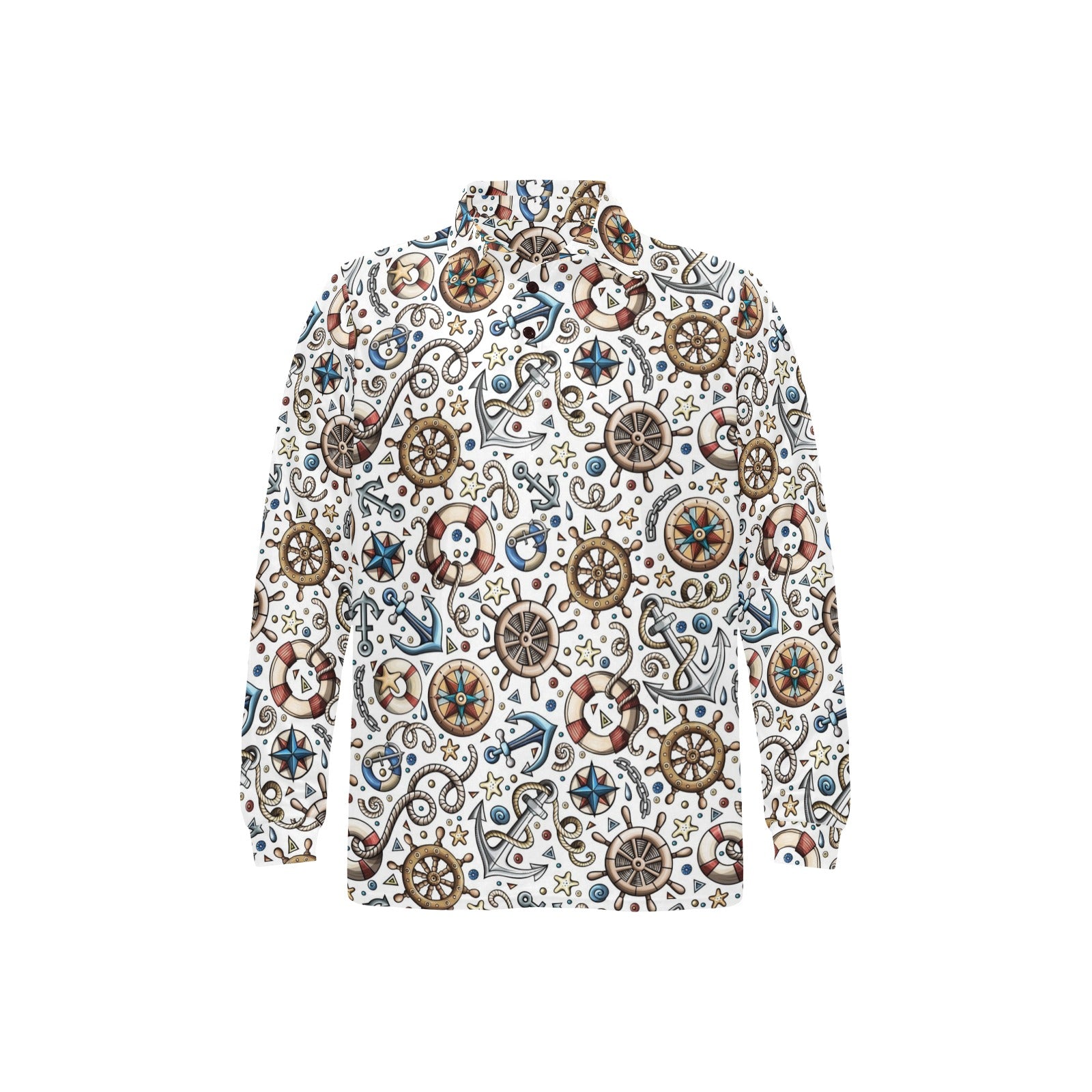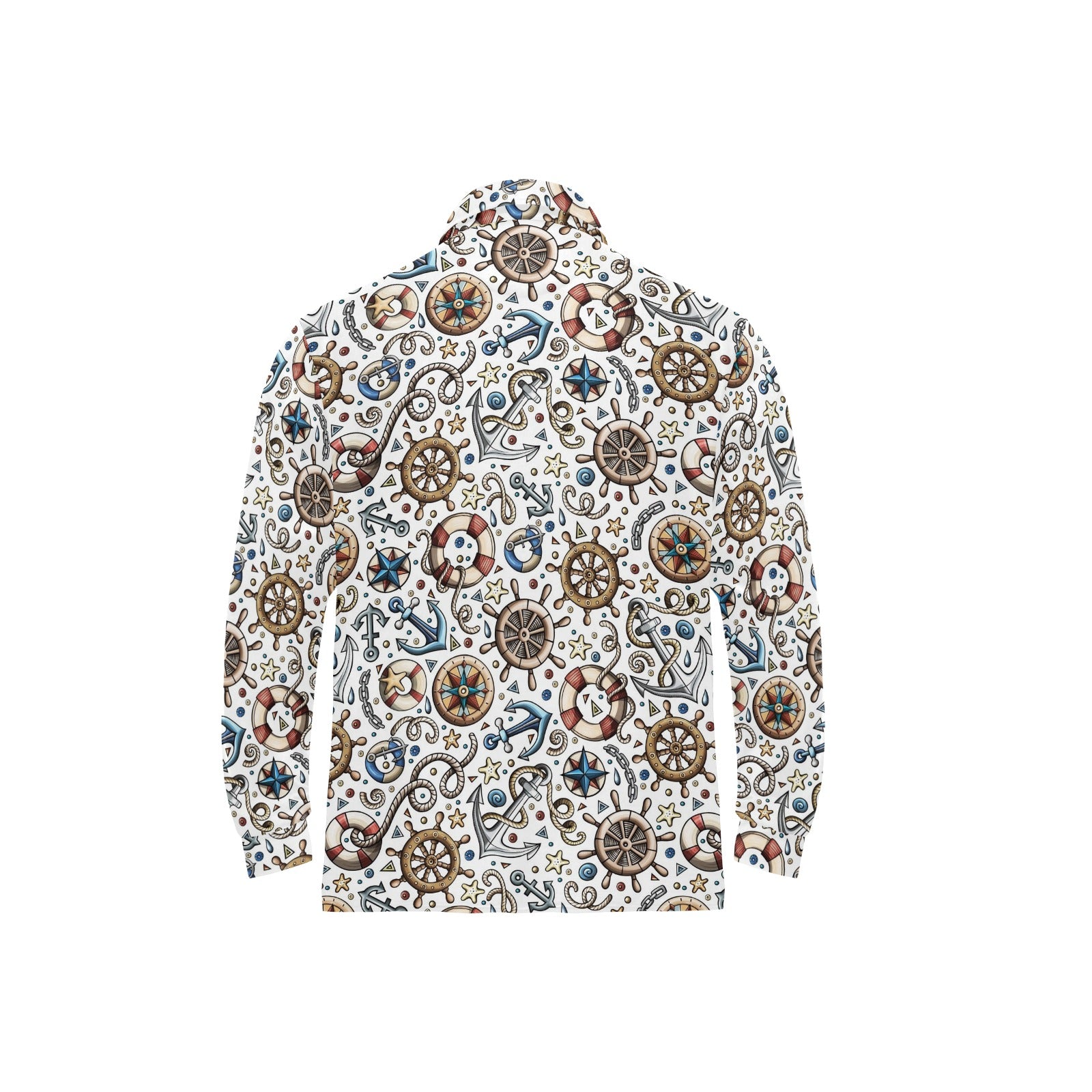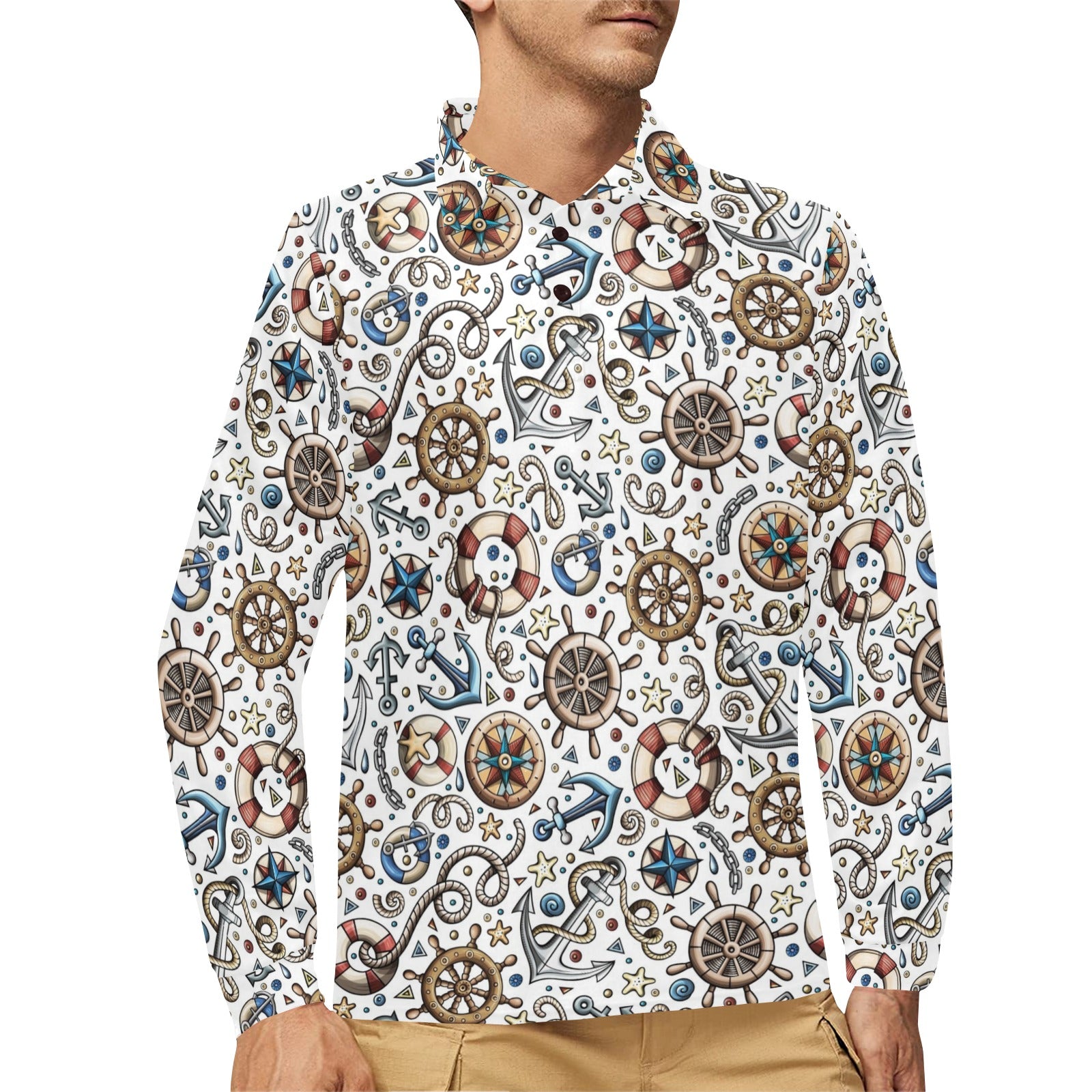 Cute nautical steering wheel anchor pattern Men's Long Sleeve Polo Shirt