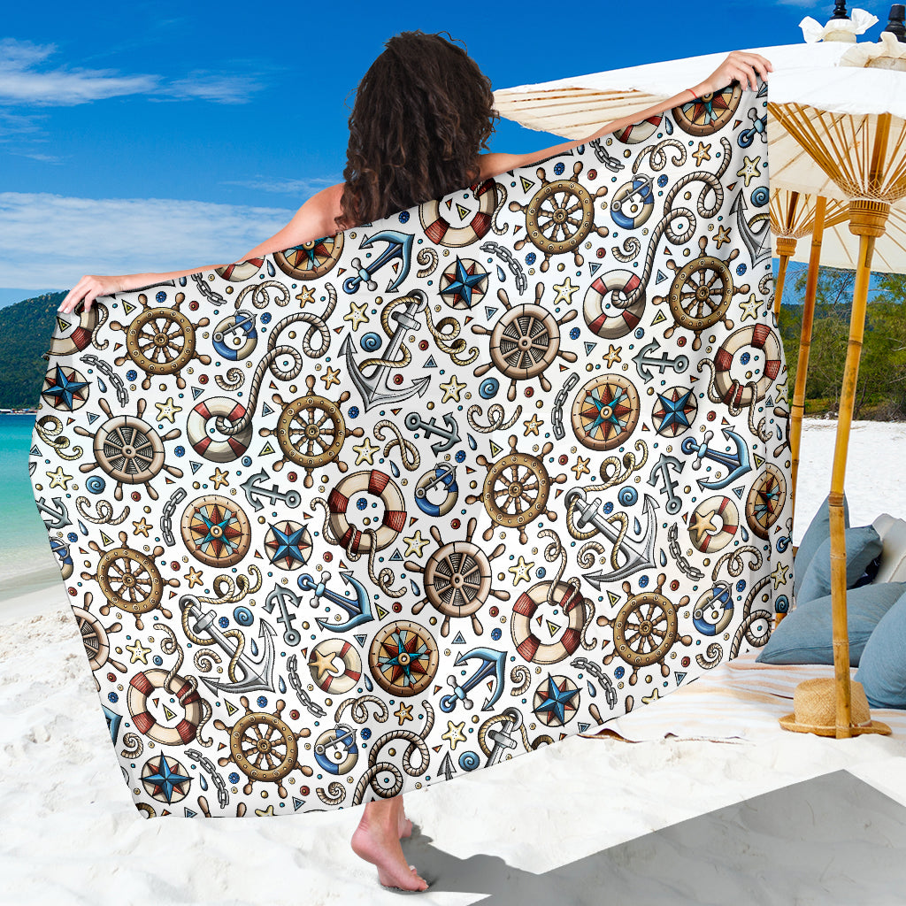 Cute Nautical Steering Wheel Anchor Pattern Sarong