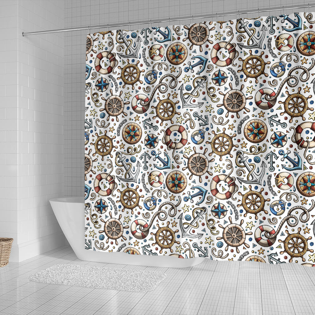 Cute Nautical Steering Wheel Anchor Pattern Shower Curtain Fulfilled In US