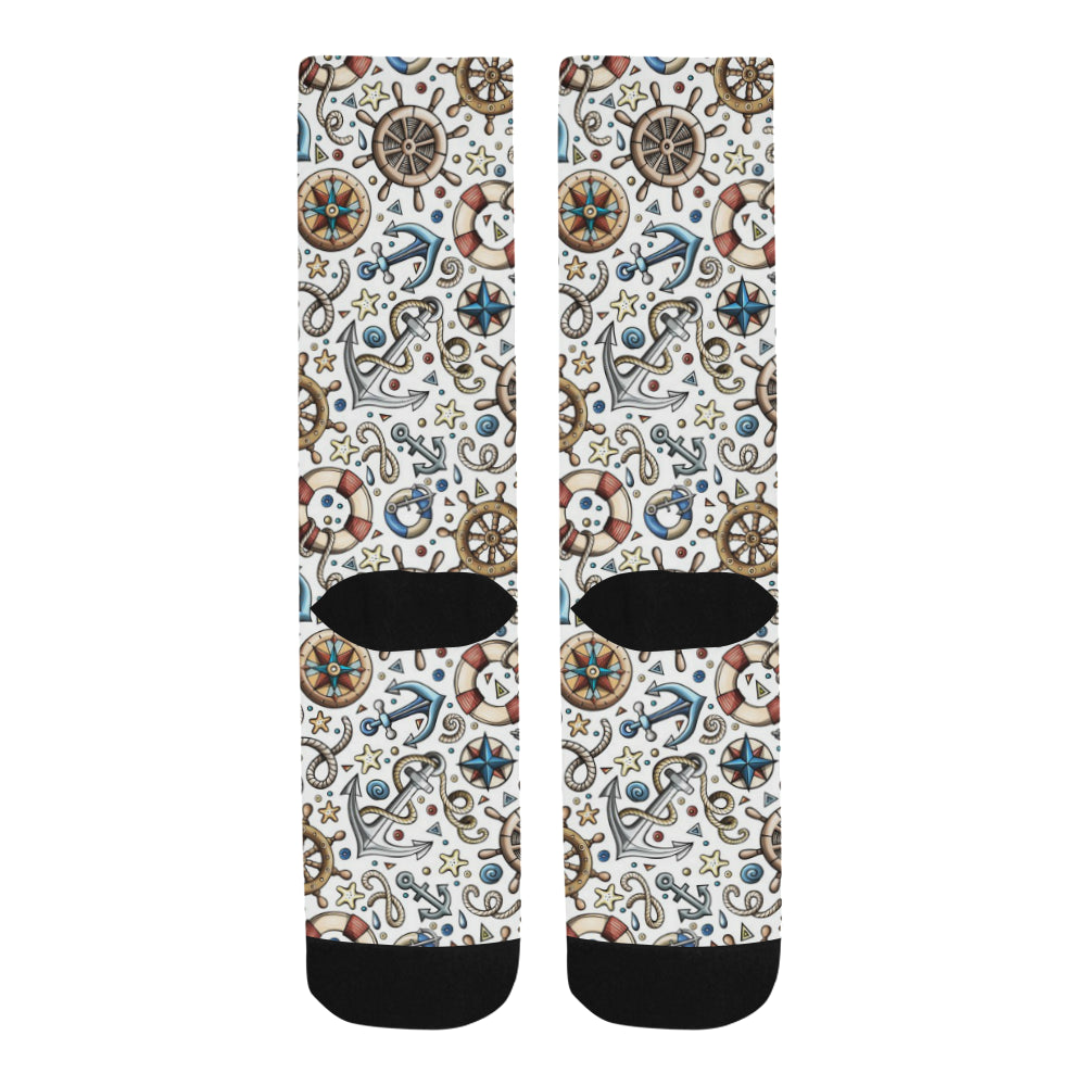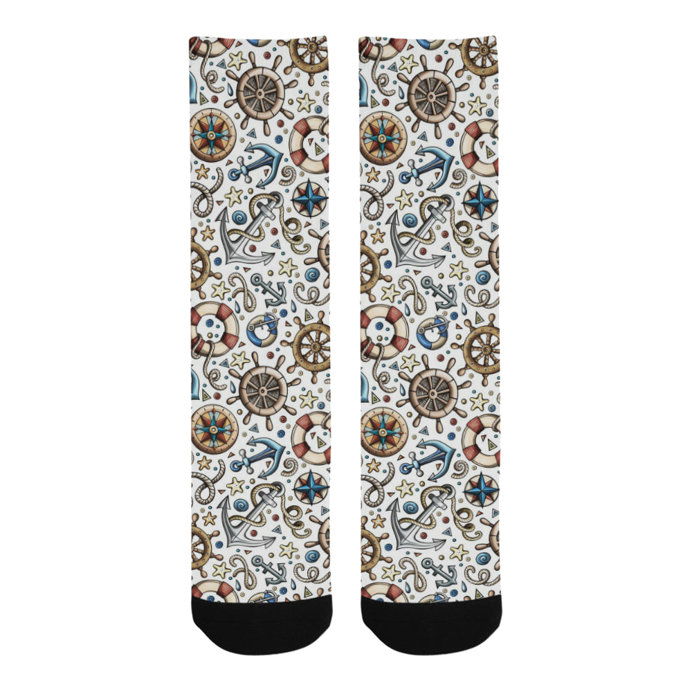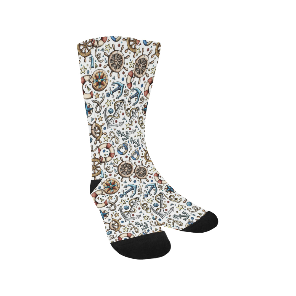 Cute nautical steering wheel anchor pattern Crew Socks