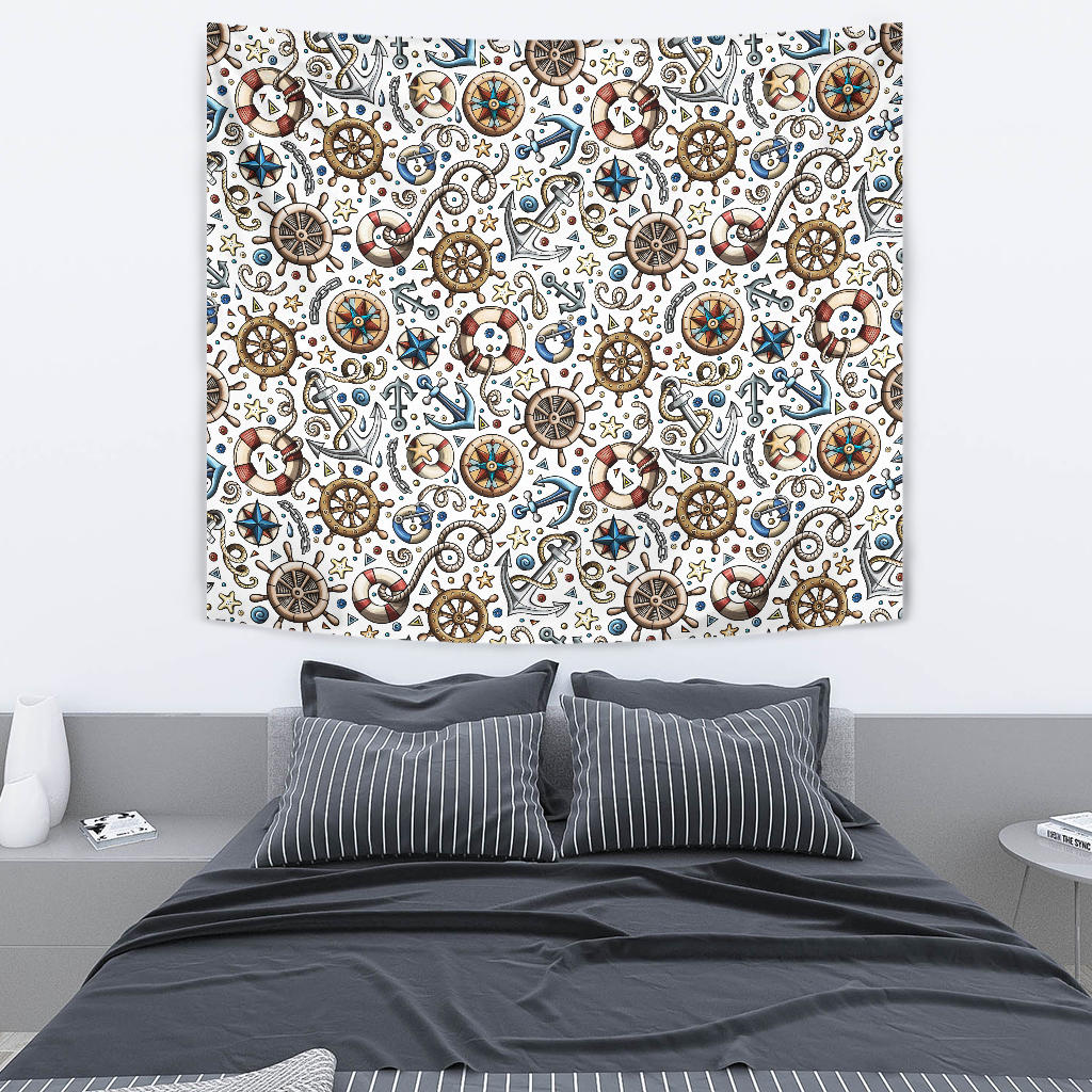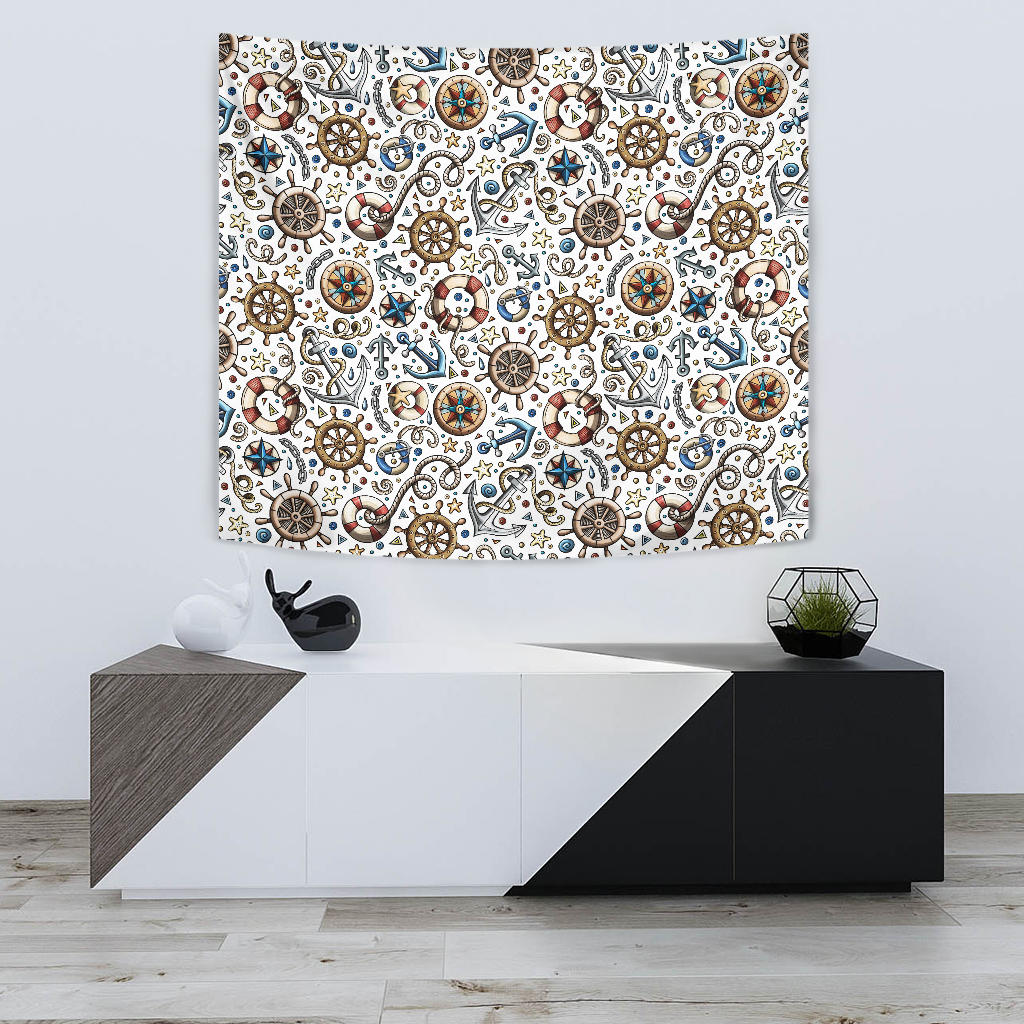 Cute Nautical Steering Wheel Anchor Pattern Wall Tapestry